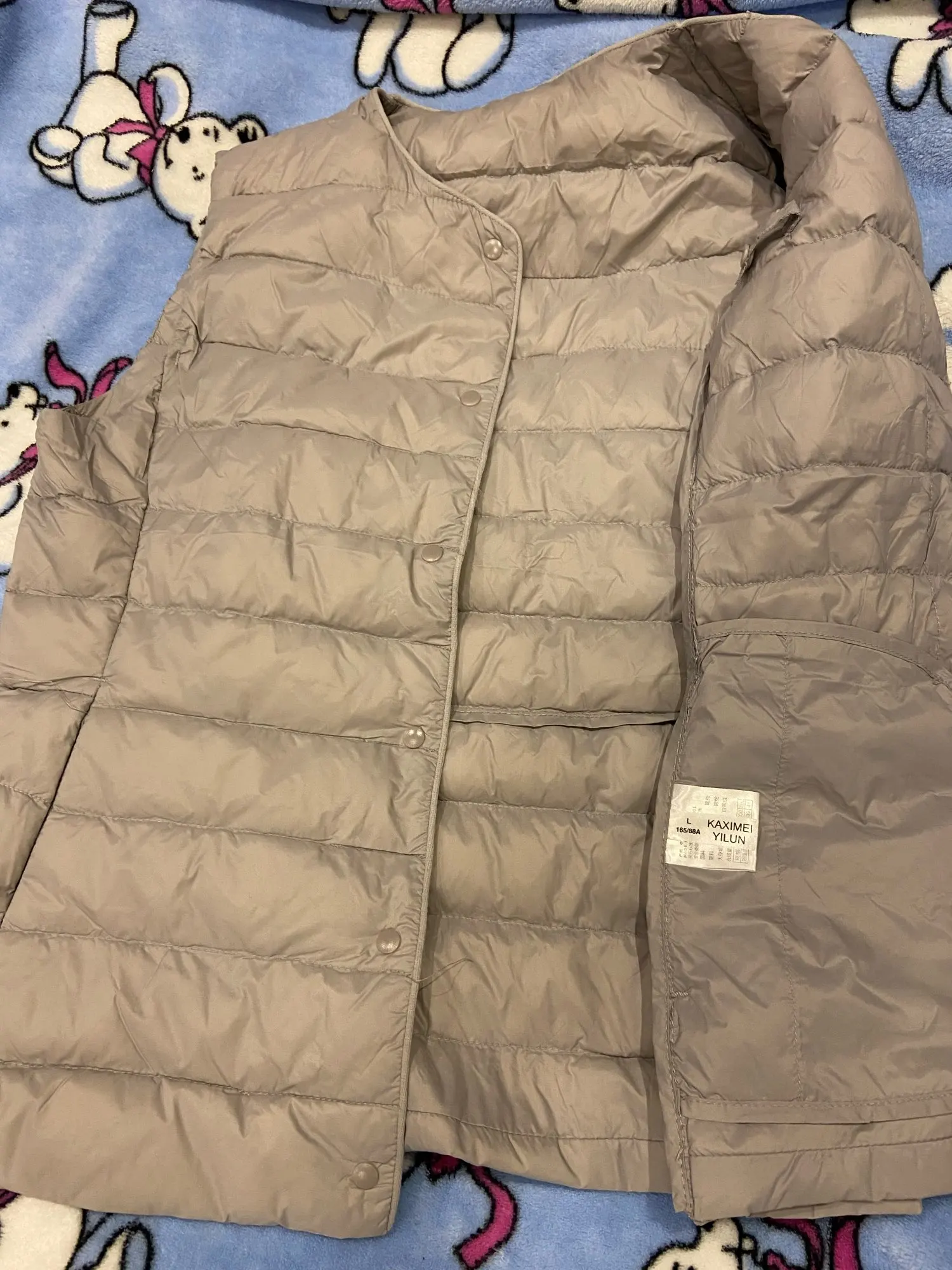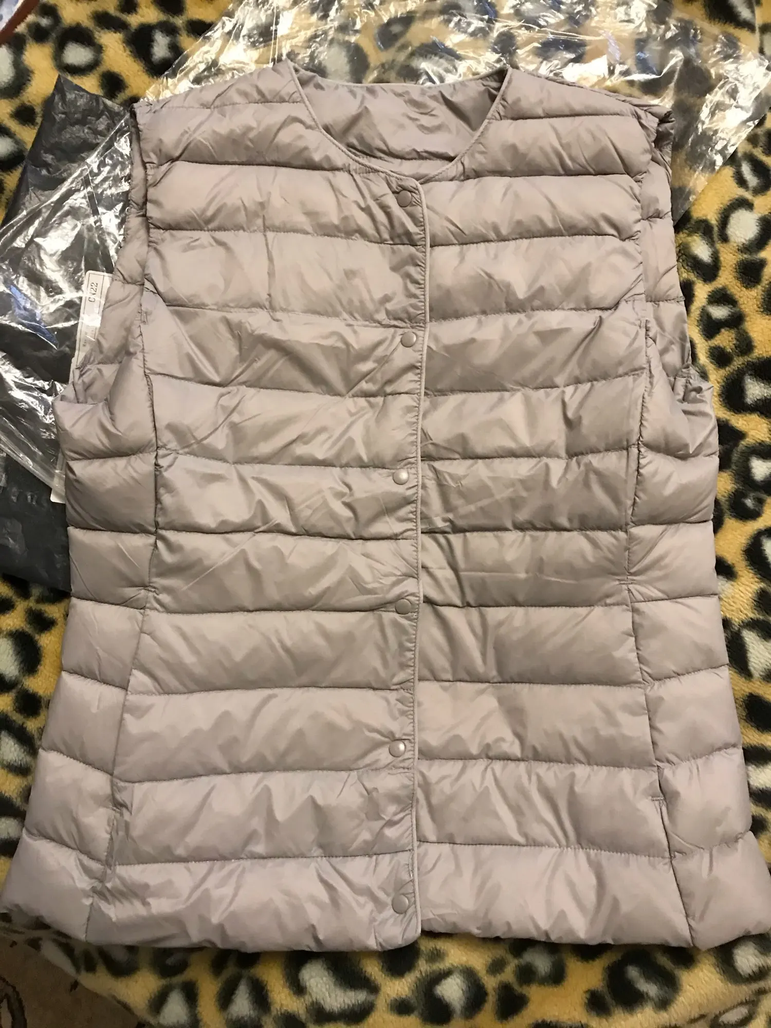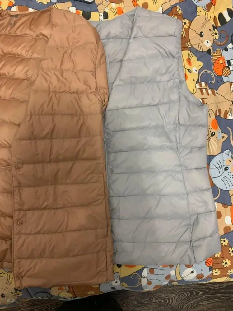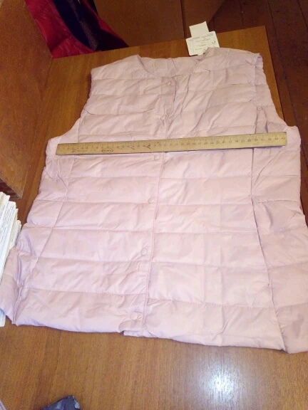 жилетка просто супер, полный аналог юникло, даже бирка похожа. ультралегкий, теплый, сшит очень качественно. нитки не торчат, швы ровные, все качественное. беру второй раз, первый раз ошиблась с размером (на 44 российский берите xl) и цвет взяла другой. розовый в реальности очень приятный, нежный. однозначно рекомендую! пришло в Мск за 2 недели.