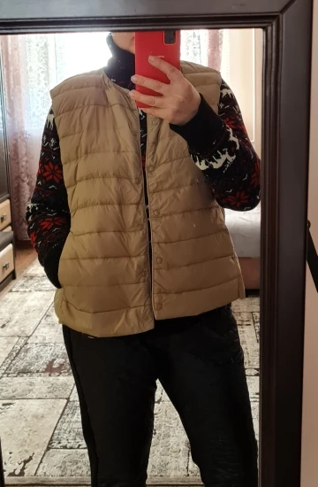 Отличная жилетка, на свои параметры ог 84, от 79, об 98,рост 164,5 L подошла. Чуть тоньше, чем в Uniglo, но я её заказывала для того чтобы носить под куртку, так, что все устраивает. Думаю, что закажу ещё в другом цвете побольше.
