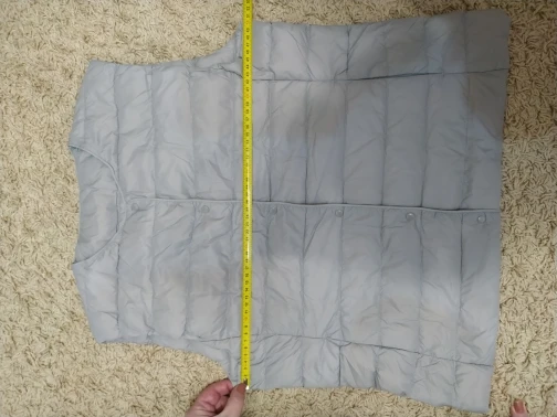 К сожалению, продавец неверно указывает размеры изделия. У меня есть эта же жилетка из юникло в размере XL, и она раза в два больше, чем здесь размер XXL!!! Обращайте на это внимание. Девушкам с грудью 2 и более размера уже не подойдет. Хорошо, что у меня привычка заказывать одежду на размер больше. Носить теперь только на облегающую водолазку. Вот размеры жилетки XXL (в скобках будут те, что указал продавец): плечо-37(40), грудь-50(52*2=104), длина-56(59). Смотрите сами...