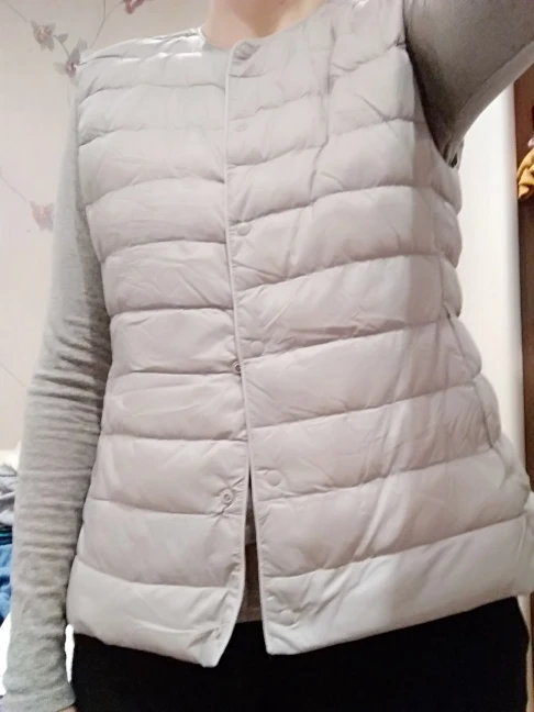 Жилетка очень лёгкая и тёплая. Все хорошо продумано. Кнопочки пластик, чтобы не ржавели. Застегивается плотно. И ворот интересно продуман и сшит (можно сделать более глубоко вырезанным) Довольны покупкой и продавцом. РЕКОМЕНДУЮ ВСЕМ