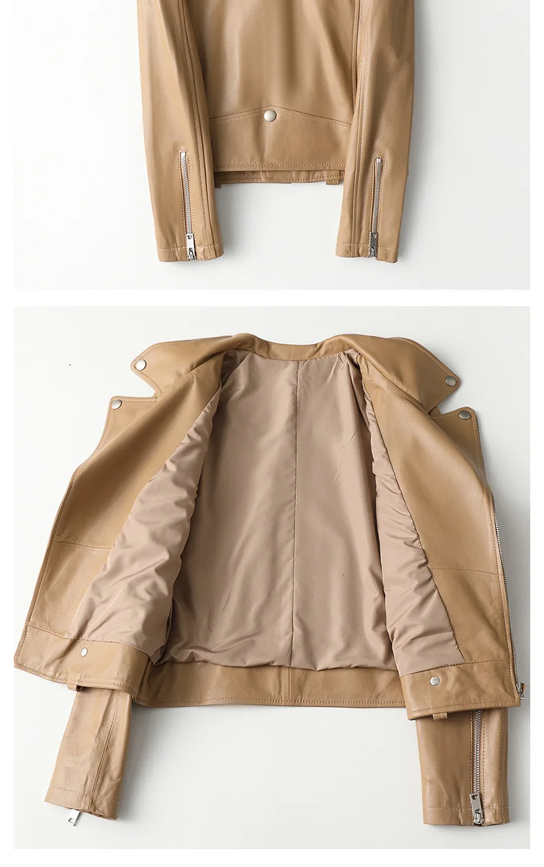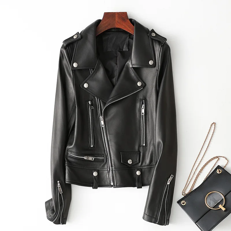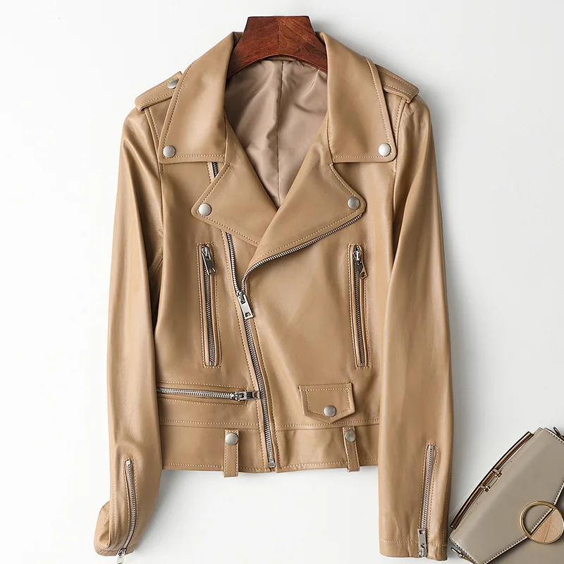 Куртка женская из натуральной овечьей кожи, мотоциклетный Повседневный модный топ из 2022 натуральной кожи в Корейском стиле, весна-осень