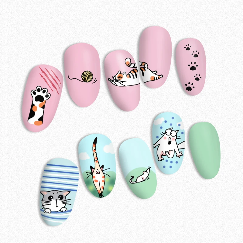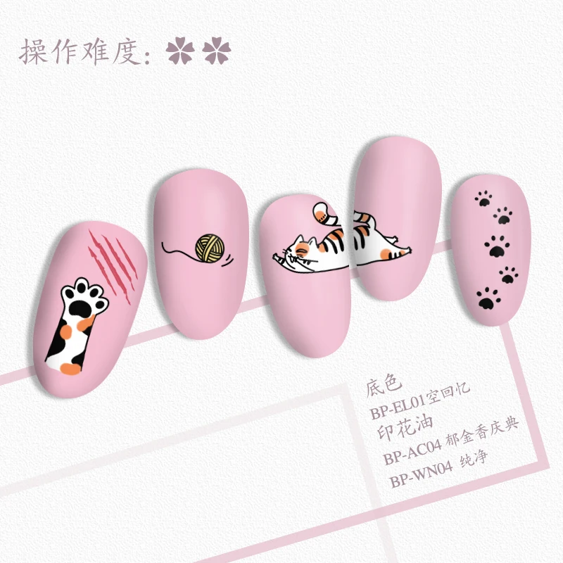 Пластины для стемпинга ногтей BORN PRETTY, прямоугольные, с изображениями кошек, из нержавеющей стали