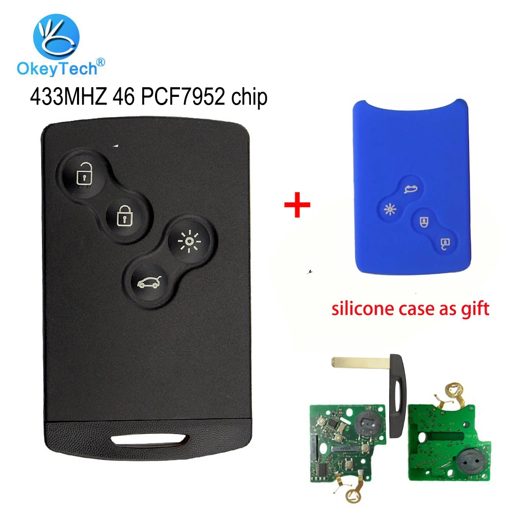 Okey Tech 4 кнопки 433 Мгц дистанционный умный Автомобильный ключ для Renault Laguna Koleos Megane со вставкой Blade 46 PCF7952 силиконовый чехол