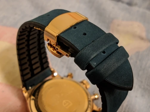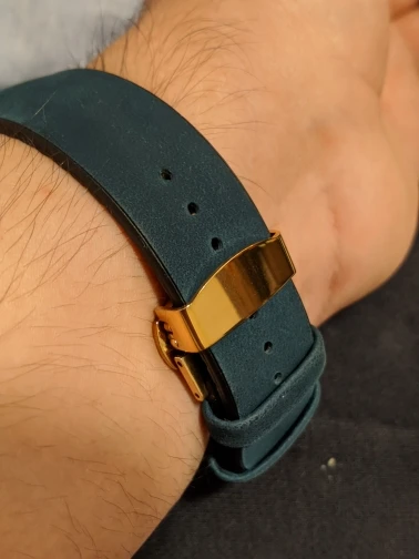 Ремешок чуть короче оригинала, кончик ремешка на немного входит в хлястики. Ремешок немного жестковат, давит запястье но думаю разносится. В целом все хорошо.