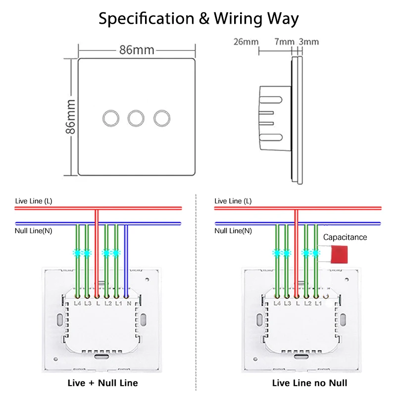 Внимание: Проверьте, какой способ подключения (live + null line или live line no null version) подходит для вас перед размещением заказа.YIDI WiFi умный светильник настенный сенсорный переключатель, стандарта ЕС, США, Великобритании Стандартный Беспроводной Tuya Smart Life APP пульт дистанционного управления голосовой Управление 2/3 способ 1/2/3/4 банды настенный выключатель, работа с Alexa и Google AssistantСпецификация:Название товара: настенный светильник WIFI Smart TouchНомер товара: YD-WS-T1Количество тюков: 1/2/3/4 GangМатериал панели: закаленное стеклоМеханический срок службы: 100000 раз работыРабочая среда: -30 ~ 70 ℃, ≤ 95% RHМаксимальное напряжение: 250 В переменного токаРазмер: 86 мм * 86 мм * 34 ммБеспроводной Стандартный: Wi-Fi 2,4 ГГцУдаленное Расстояние: в любом местеЦвет: белый/черный/золотой/розовый/серыйПриложение Smart Control: Smart Life или TuyaФункция:[Голосовое управление]:Подключите коммутатор с Amazon Alexa(Amazon echo/dot/tap) или Google Assistant для голосового управления.[Пульт дистанционного управления]:Загрузите приложение Smart Life или Tyya в свой смартфон, чтобы управлять настенным переключателем по беспроводной сети с помощью Wi-Fi или сети 4G. Концентратор не требуется.[Совместно используемое устройство]:Светильник samrt может быть оснащен несколькими контрольными узлами для разных членов семьи. Один мобильный телефон также может управлять многими переключателями.Светодиодный настенный выключатель позволяет пользователям легко находить и включать свет ночью.