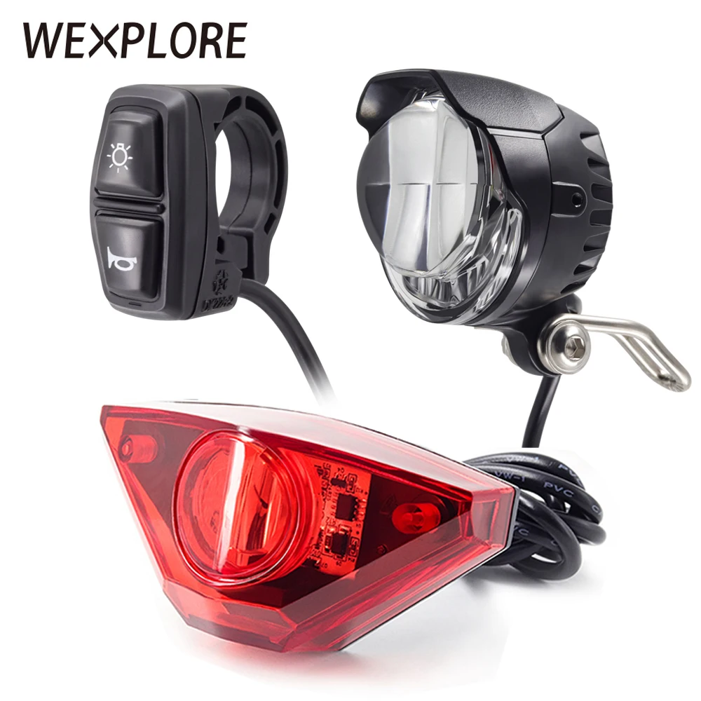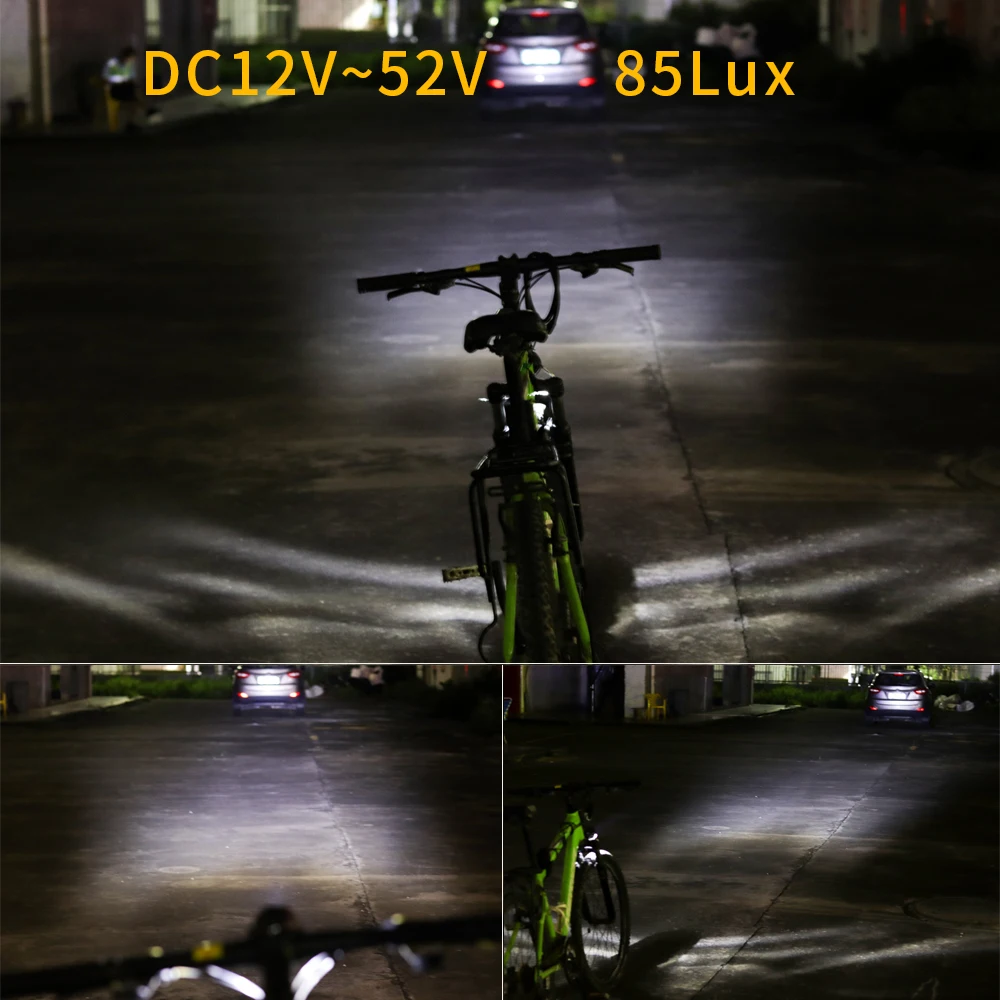 Фара для электровелосипеда в светильник для электрического велосипеда светильник Встроенный динамик Вход 12V 24V 36V 48V 56в светодиодный светильник 85Lux Электрический фары для мотороллера светильник s Запчасти