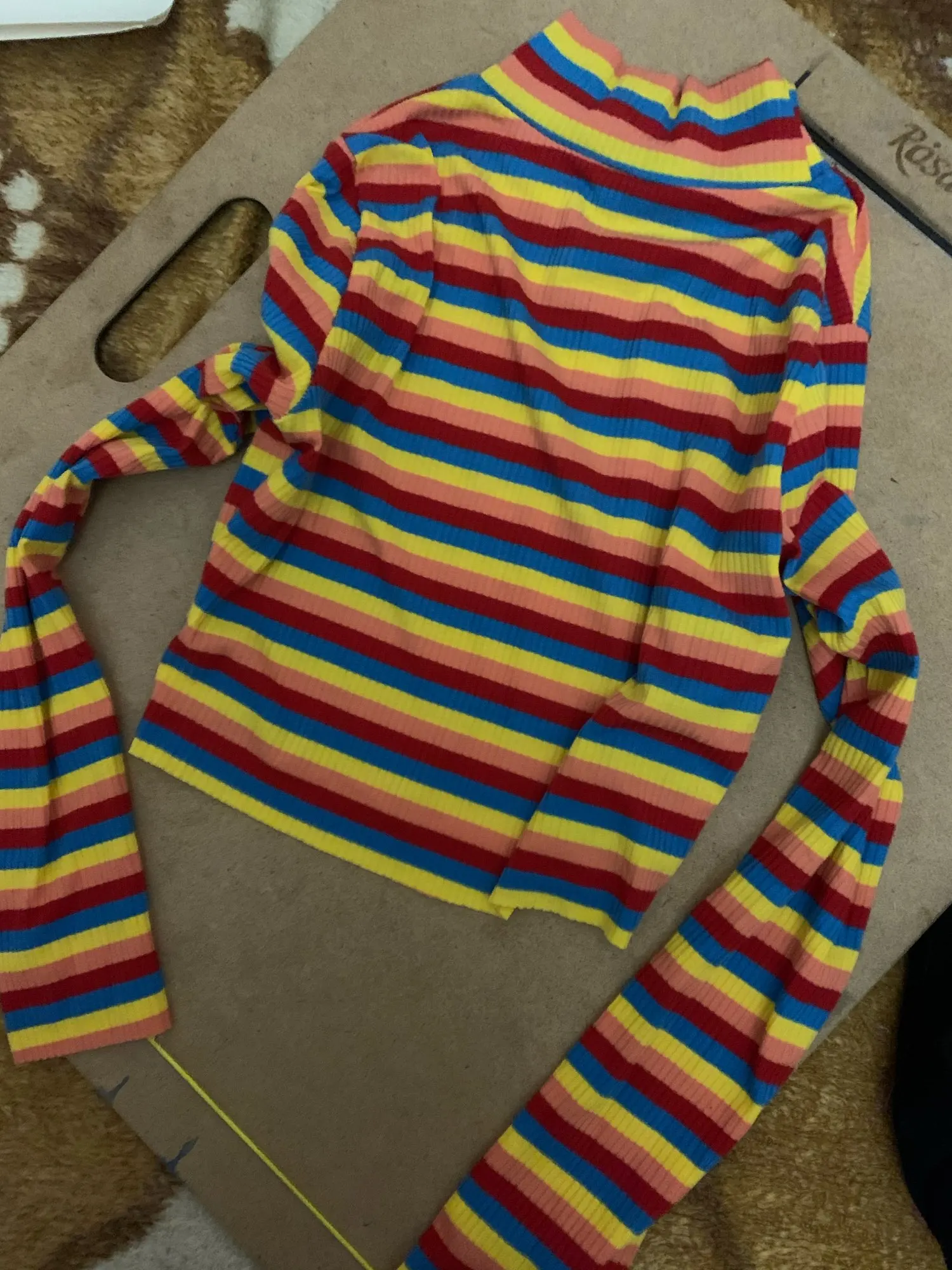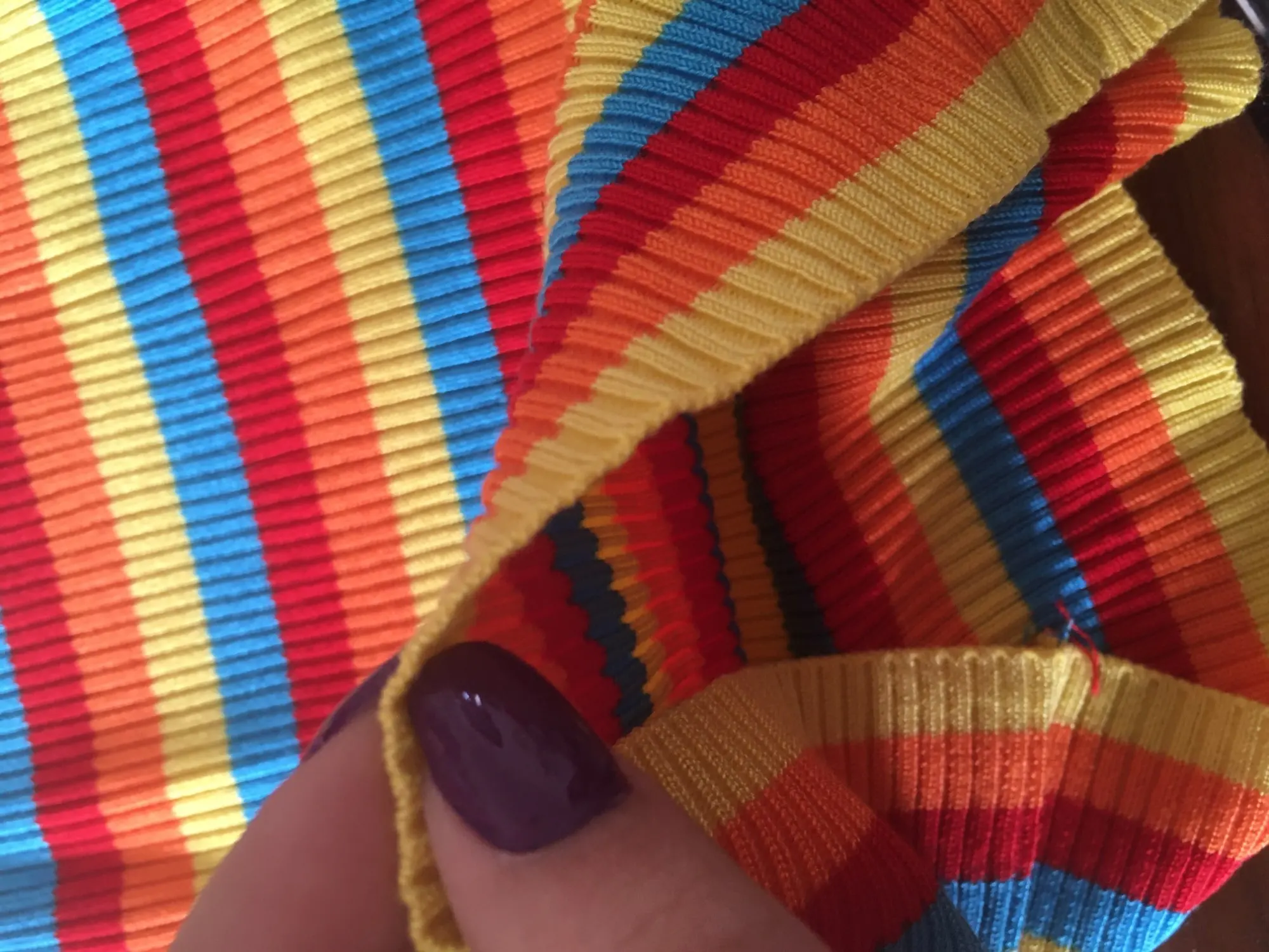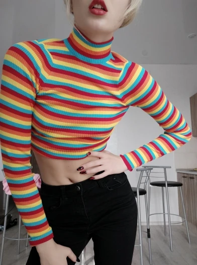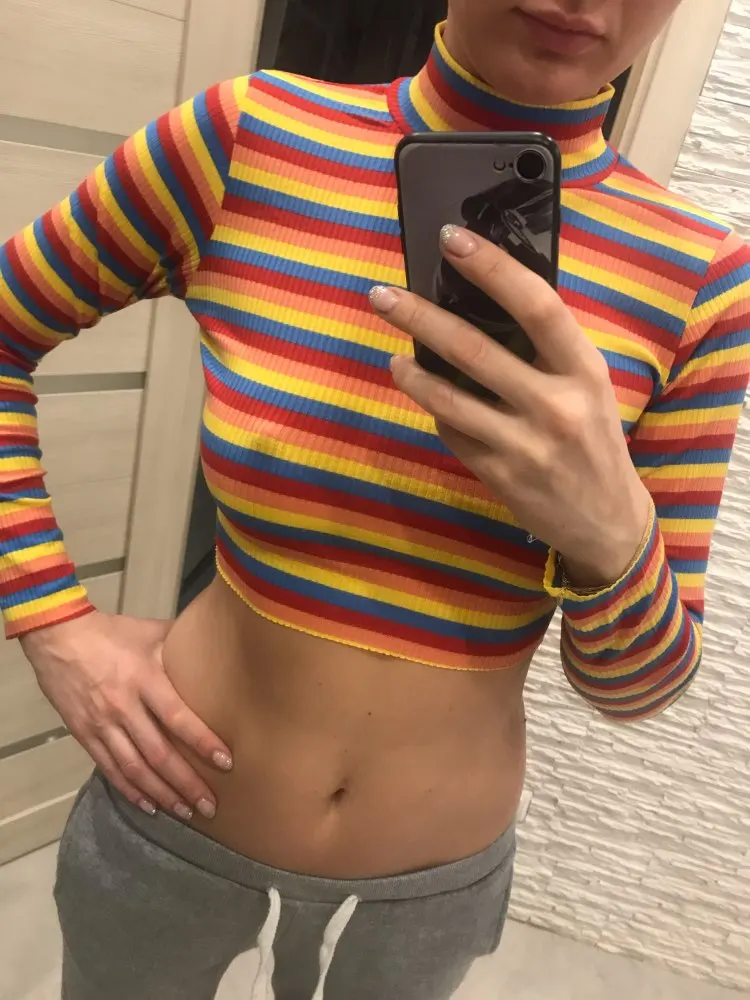 Просто шикарный гольфик, очень яркий, прям кислотные цвета. Но очень крутой, даже лучше, чем ожидала, мягкий, нити не торчат, приятный на ощупь. И самое крутое то, что он короткий и такой яркий. Рекомендую 100%
