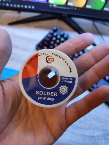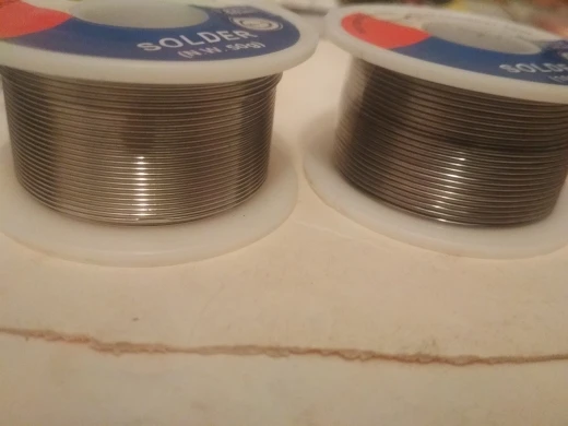 Припой норм. катушка весит больше 50 грамм, а не как обычно вес вместе с катушкой. На фото пытался сравнить с припоем от newacalox, но как понял фото не передаёт. Слева JSD, а справа newacalox. В реальности лучше блестит именно этот. Капли ставил при темпер. 300 градусов растекается норм.