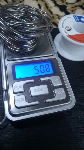 Хороший продавец, щедрый на скидки, быстро отправляет, доставка менее месяца, заказываю второй раз вторая катушка на 0.8мм 50g обошлась 64р. Первую на 1.0mm 50g даже размотал вышло ~8.4 метра,взвешивал сантиметр получилось ~0.06g в итоге 840*0.06=50.4g при взвешивании чистого мотка вес такой-же. Катушка примерно ~13.2g,13.4g Работать начинает не сказал бы что от 180°C немного поболее, что то за 200°C, блестит получше чем тот что в цветных колпачках продают, но далеко не как механик. Паяет, затекает хорошо, флюса в 1.0 мм побольше в сравнении с 0.8мм но последний паяет не хуже за этого и меньше дымит. Запах помоему сладковатый, но вредный, на вкус не пробовал! Китайцы подсадили на такой припой и теперь советский лежит без дела ) Короче, для повседневный работ отличный припой, по весу не обманывает.