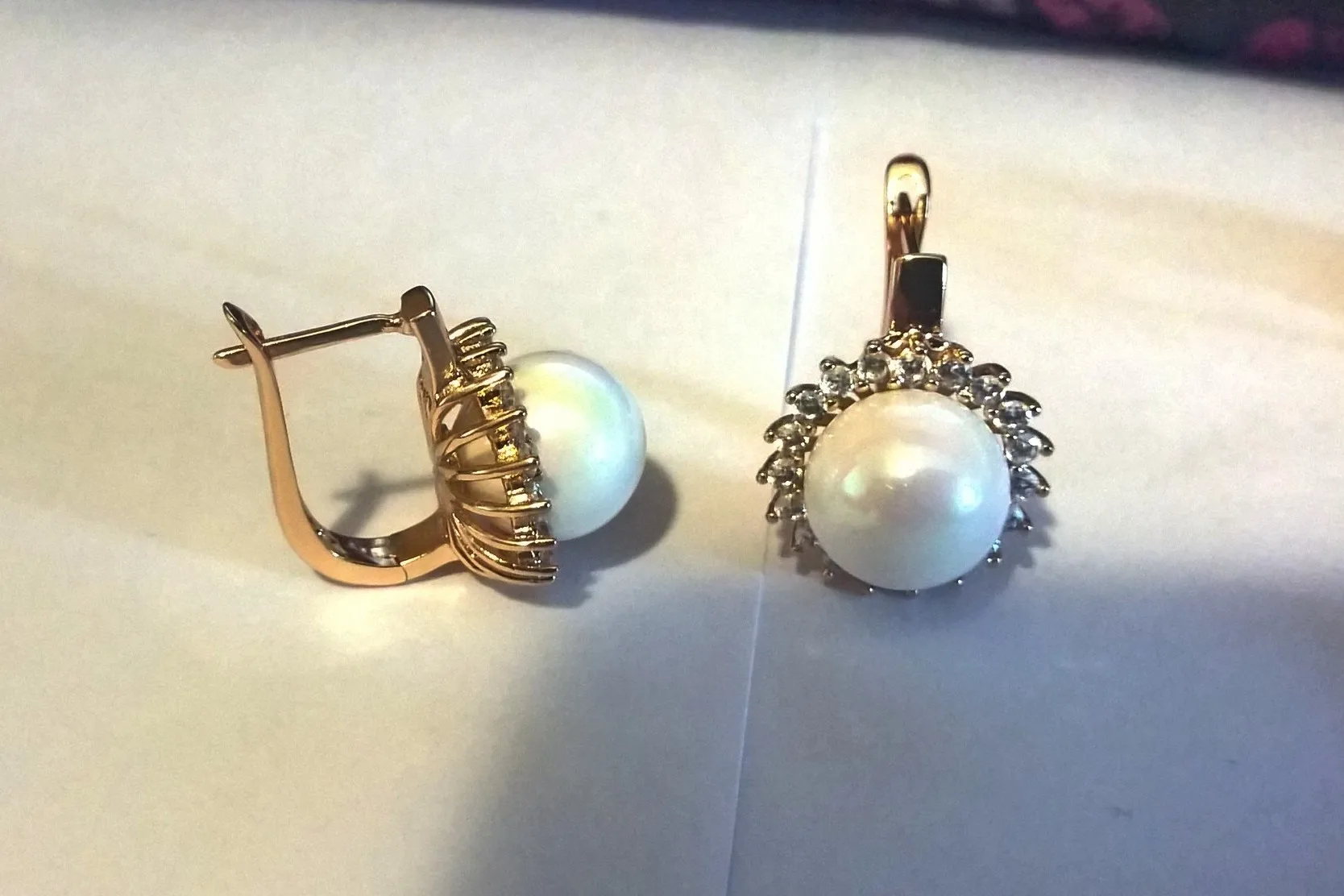 Ну, что тут скажешь... великолепно! Жемчужина не мелкая, обращает на себя внимание, и очень похожа на Майорку, все цирконы на месте. Серьги висят ровно, не заваливаются вперед, и очень легкие для ушей. Смотрятся дорого и натурально, как золотые с жемчугом и фианитами. Для средних и крупных мочек отлично подойдут. Заказывайте смело, не пожалеете!
