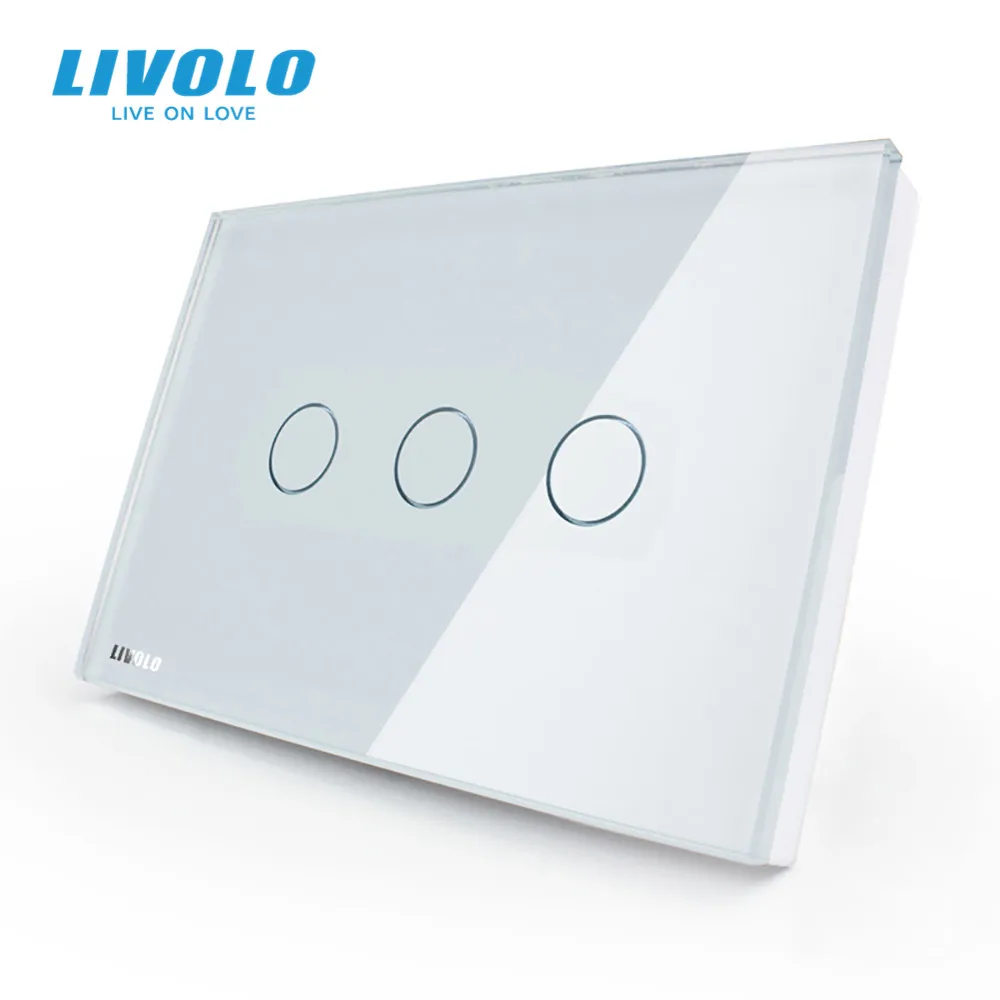 Настенный выключатель Livolo стандарта сша с сенсорным экраном, 3-клавишный, 1 канал, 110 220 в переменного тока, белая стеклянная панель, фотоэлементы