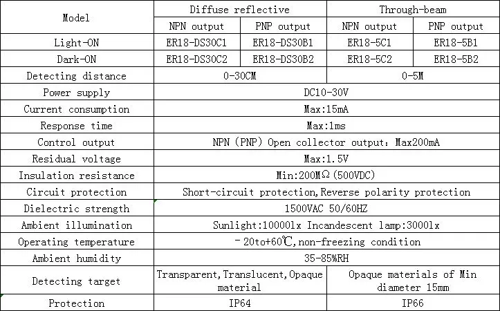 ER18-DS30C1 фотоэлектрический датчик M18 Силовые транзисторы NPN CE Сертификация пластиковые детектора