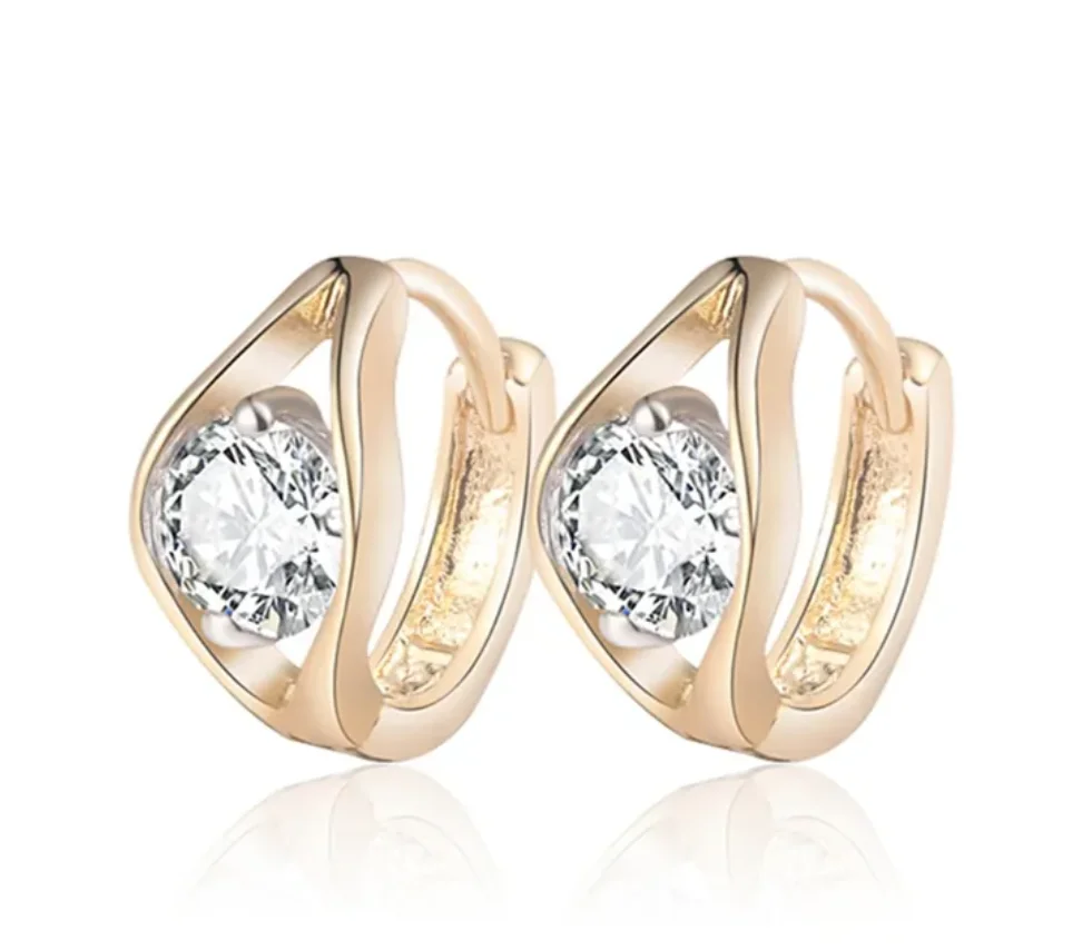 Серьги-кольца Huggie из 18-каратного золота с фианитами и сверкающими камнями 2E10 для девочек и детей