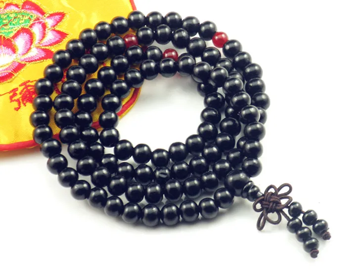 8 мм Тибетский буддизм 108 черная деревянная молитва шарик Мала ожерелье + Новый + эластичный
