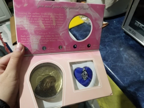 Это кулон в виде сердца с жемчугом, Настоящая устрица, содержащая красивый жемчуг, упакована в контейнер специального жидкого раствора, жемчужина будет измерять 5 - 7 мм круглой формы и формировалась в течение трех-пяти лет. В форме сердца, серебристо-позолоченная подвеска демонстрирует жемчуг, а также 16 "Серебряно-позолоченная цепочка. (Если вы хотите купить цепочку из стерлингового серебра (S925), цена составляет $13,8/коробки)