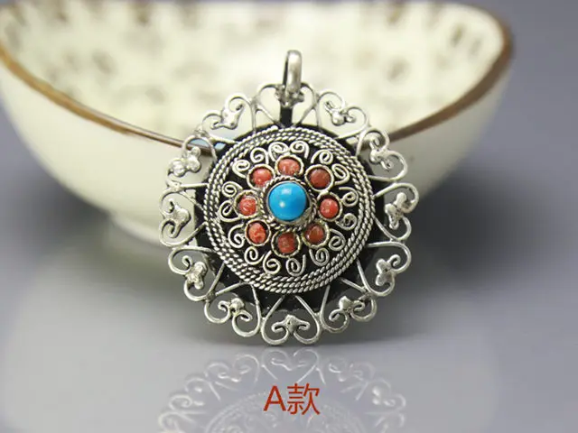 Тибетские кулоны TBP231, винтажные подвески в виде сердца и цветов, медные инкрустации, цветные шарики
