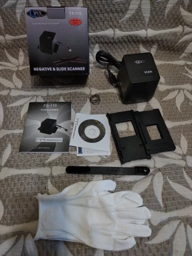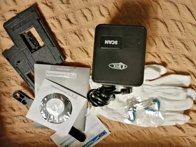 Продавец быстро отправил товар и сама посылка пришла достаточно быстро до Москвы. Долго не писала отзыв, потому что некогда было заняться тестированием. Сегодня протестировала. В комплекте сам сканер, и комплектующие к нему: два держателя, один для слайда, второй для пленки. Преимущество данного сканера в том, что пленку резать не надо. Так же в комплекте перчатки, чтобы работать с пленкой, щёточка для чистки и ПО на диске. В инструкции есть раздел на русском, все доступно написано, хотя понятно все даже и без нее. В целом, за свою цену прекрасный прибор, который позволит оцифровать домашнюю историю. Не все вытягивает на отлично, но я все равно очень довольна приобретением. Пока цифровала только пару слайдов, как с пленкой пока не знаю. К покупке рекомендую.
