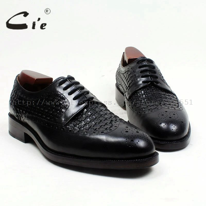 Мужские туфли ручной работы cie D166, круглый носок, шнуровка, офисные Дерби, черная телячья кожа, кожаная подошва
