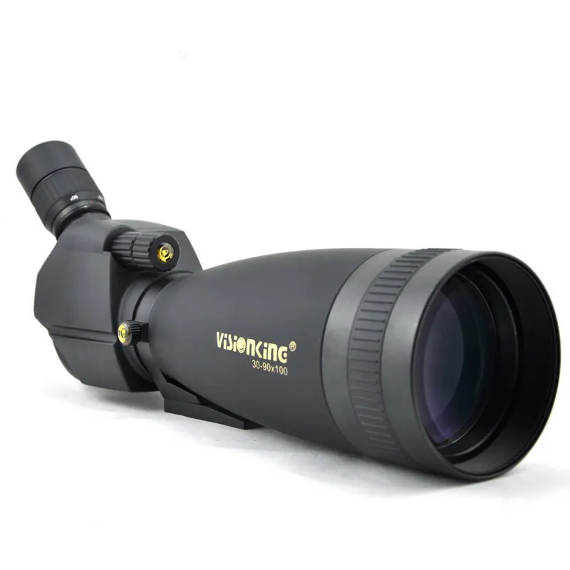 Это Visionking 30-90x10 0 Высокое качество Зрительная труба с большим глазным объективом, соответствующий штатив, полностью многослойная оптика в сочетании с BAK4 призмы обеспечивают кристально чистое изображение во всех условиях. Идеально подходит для охоты, наблюдения за птицами и всех видов применения. 2 скорости с двойным увеличительным фокусом контроля, легкая работа. Превосходное качество, уплотнительным кольцом с уплотнительным кольцом и заполнен азотом, полностью Водонепроницаемый позволяет использовать в любую погоду.