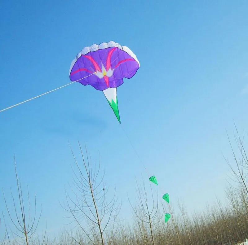 Бесплатная доставка, большие мягкие воздушные змей Morning Glory, нейлоновая ткань, воздушный змей для детей, серая катушка, Шелковый воздушный змей, фольга, светящийся шнур hawk