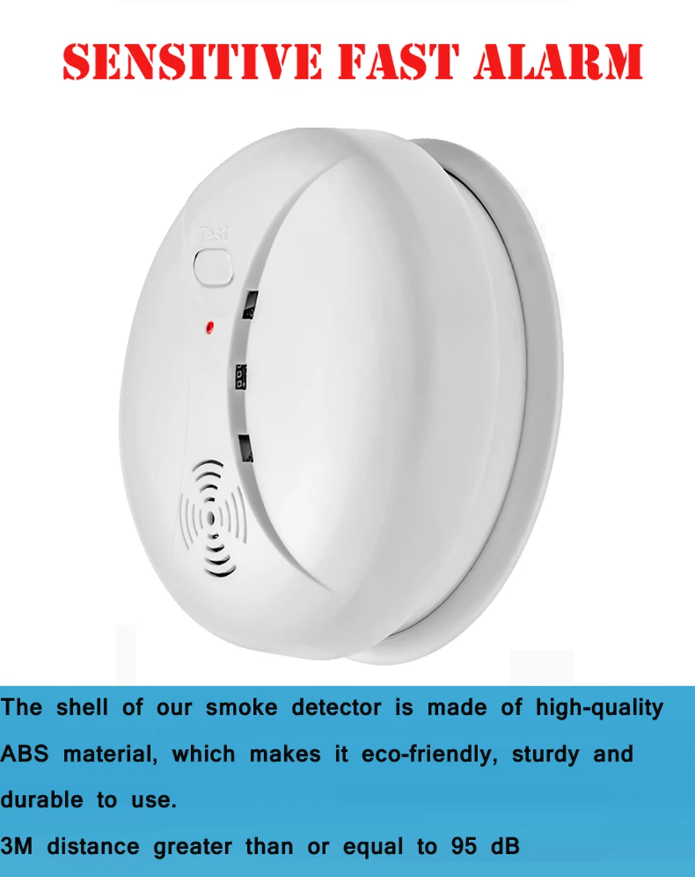 Наш детектор дыма является большой бытовой необходимости для защиты безопасности ваших семьи, и он также идеально подходит для использования на фабрике, в школе, отеле, банке, в ресторане и во многих других местах. Он очень чувствителен, очень прост в установке с помощью прилагаемых винтов. Когда происходит утечка дыма, красный индикатор будет мигать и напоминать вам, сопроводив громкий сигнал тревоги, и 433 МГц/315 МГц беспроводной сигнал тревоги передачи, для обеспечения личной безопасности. И он Управляется 1 шт 9 В батареи, энергосберегающие и простые в использовании. Такой практичный детектор дыма, стоит купить!