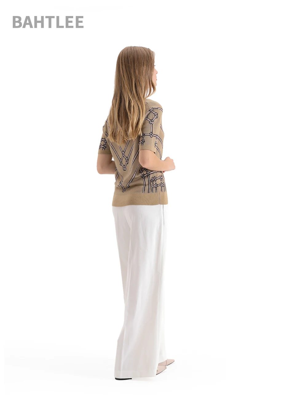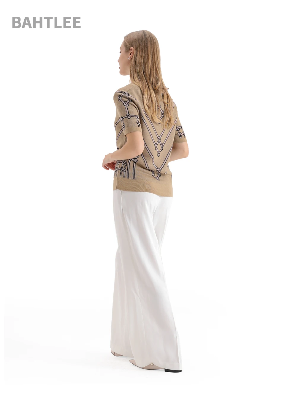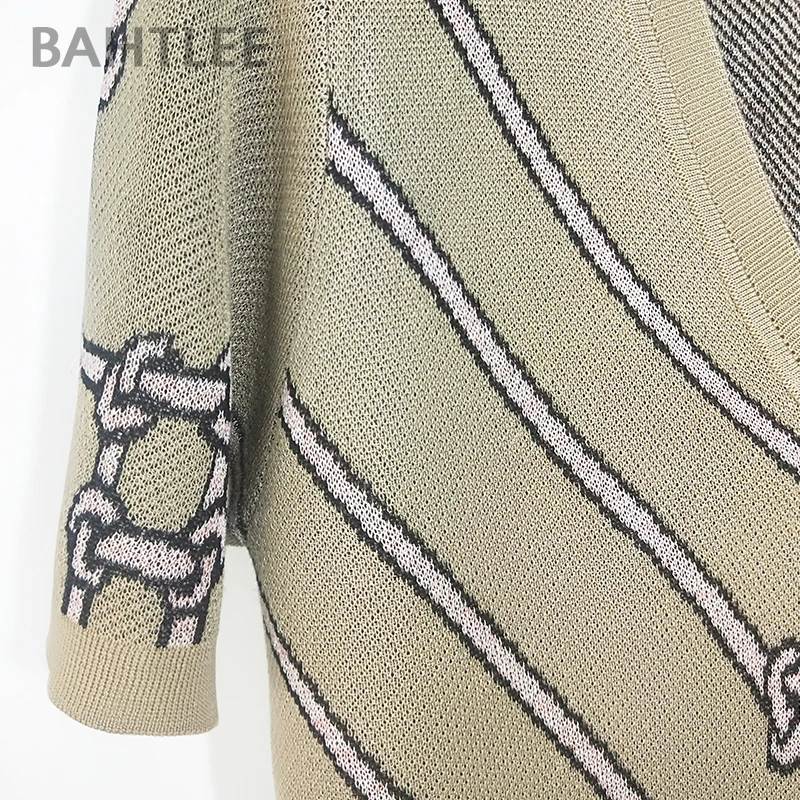Женский вязаный свитер BAHTLEE, с V-образным вырезом, коротким рукавом, жаккардовый, с вентиляцией, свободного покроя, летний