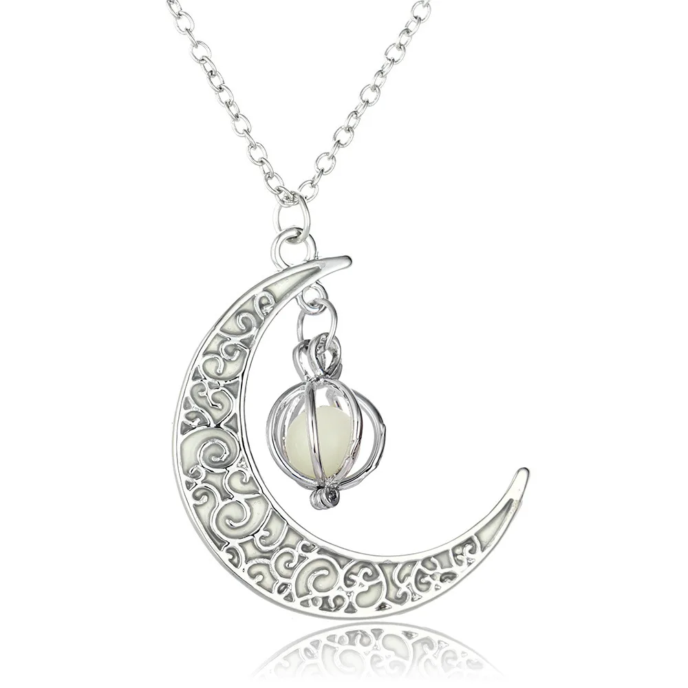 Новинка 2021, светящееся ожерелье в виде горячей Луны, ювелирные изделия, посеребренное женское ожерелье с полым светящимся камнем на Хэллоуин, подарки