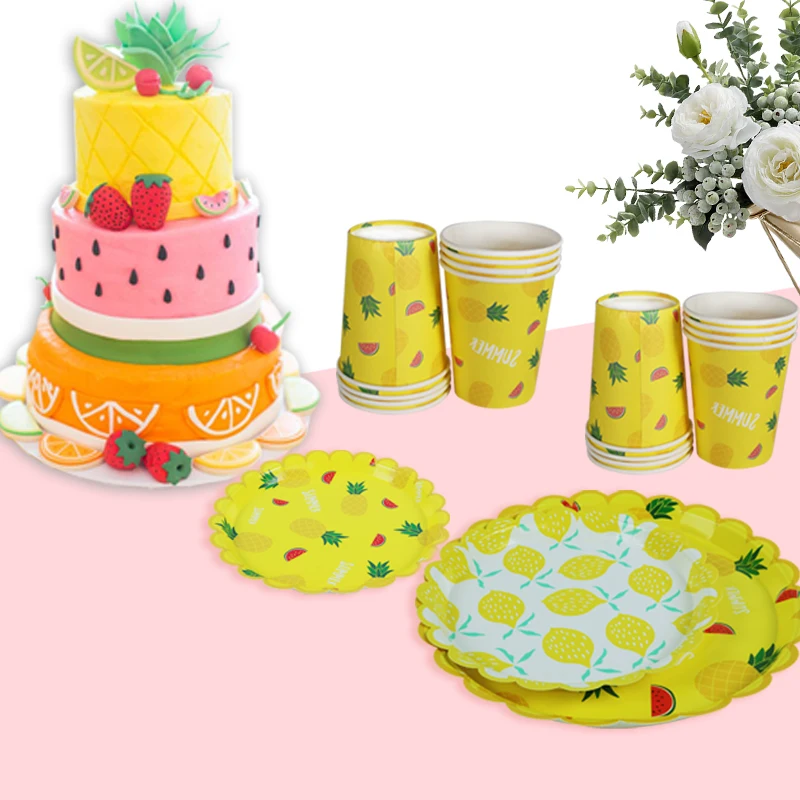 Одноразовая посуда для гавайской вечерние, бумажная тарелка с принт...
