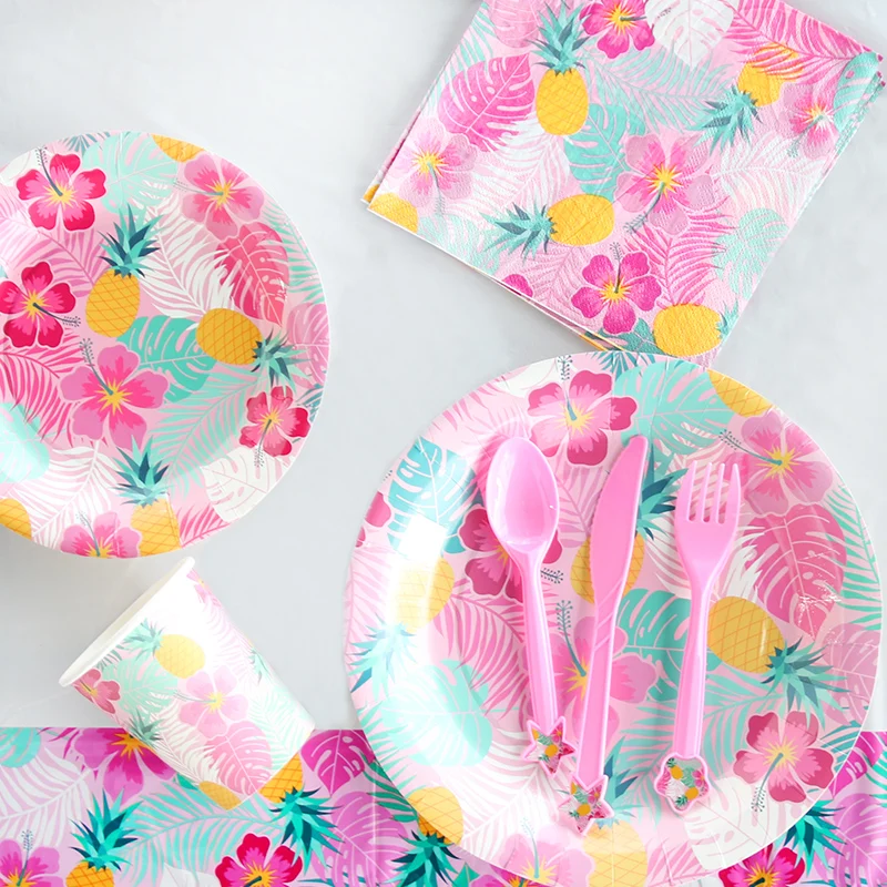 Луо Гавайи вечерние пальмовых листьев одноразовая посуда Фламинго День рождения вечерние поставки тропических Свадебная вечеринка вечерние украшения стола