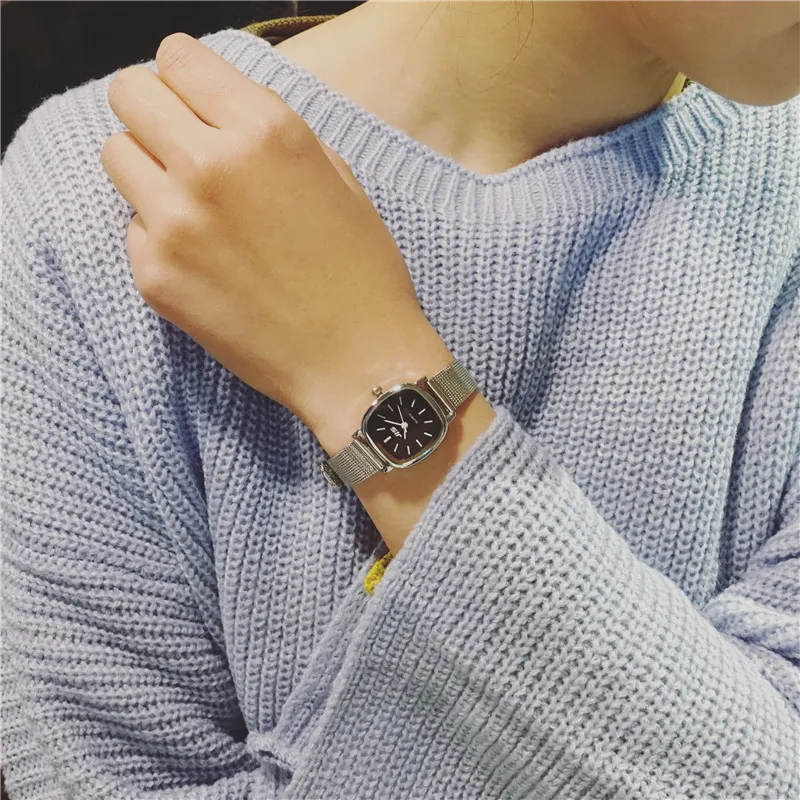 Женские наручные часы с квадратным циферблатом, простые серебристые женские часы с сетчатым ремешком, модные повседневные женские кварцевые часы, женские часы в подарок