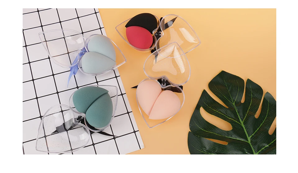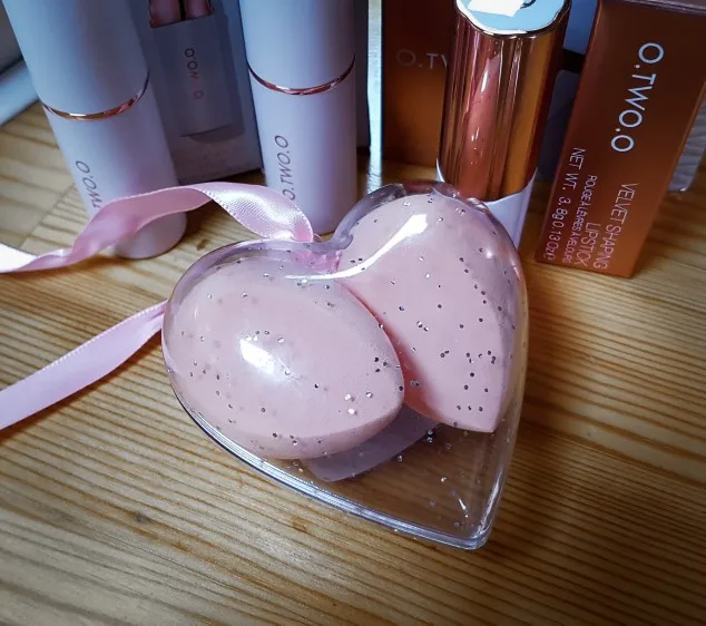 O.TWO.O 2 шт.компл. губка для макияжа коробка в форме сердца не латексный Материал Косметический спонж для пудры на ручке использовать инструменты для макияжа красоты