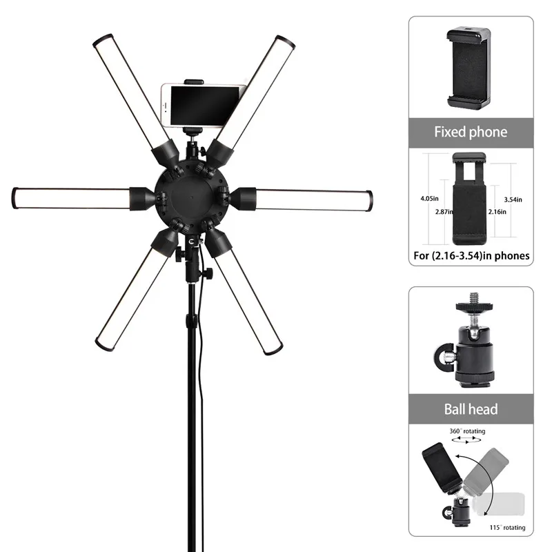 Продаем fosoto бренд FOSOTO FT-06 мини мультимедийный Экстремальный светодиодный звездный свет ярче, чем кольцевой свет, оснащен шестью регулируемыми световыми полосами, которые могут увеличить проекцию света и дальность света, чтобы предоставить вам фотографии, прямые Потоковые передачи, YouTube live, макияж красоты, селфи и видео обеспечивают больше света. Регулируемая световая планка: вы можете отрегулировать световую планку для любой формы по желанию. Если вы хотите, чтобы у вашего света было специальное освещение, вы можете зафиксировать все освещение с одной стороны или разогнуть источник света. Это очень полезно для пушистых комнат. 60 Вт Высокая мощность: оснащен 288 SMD лампами, яркость яркая, чем у обычных кольцевых огней.