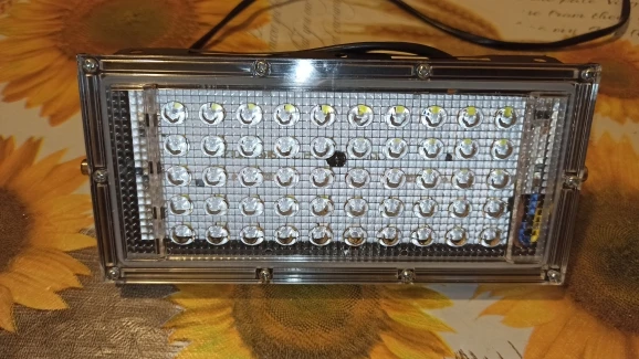 Пришла посылка на почту ,хорошо упаковано ,лампа работает. Присоединила провод побыстренькому чтобы проверить лампу ,желтый земля ,все работает но все нужно переделывать . От 50вт ожидалось большего ,но и это нормально .