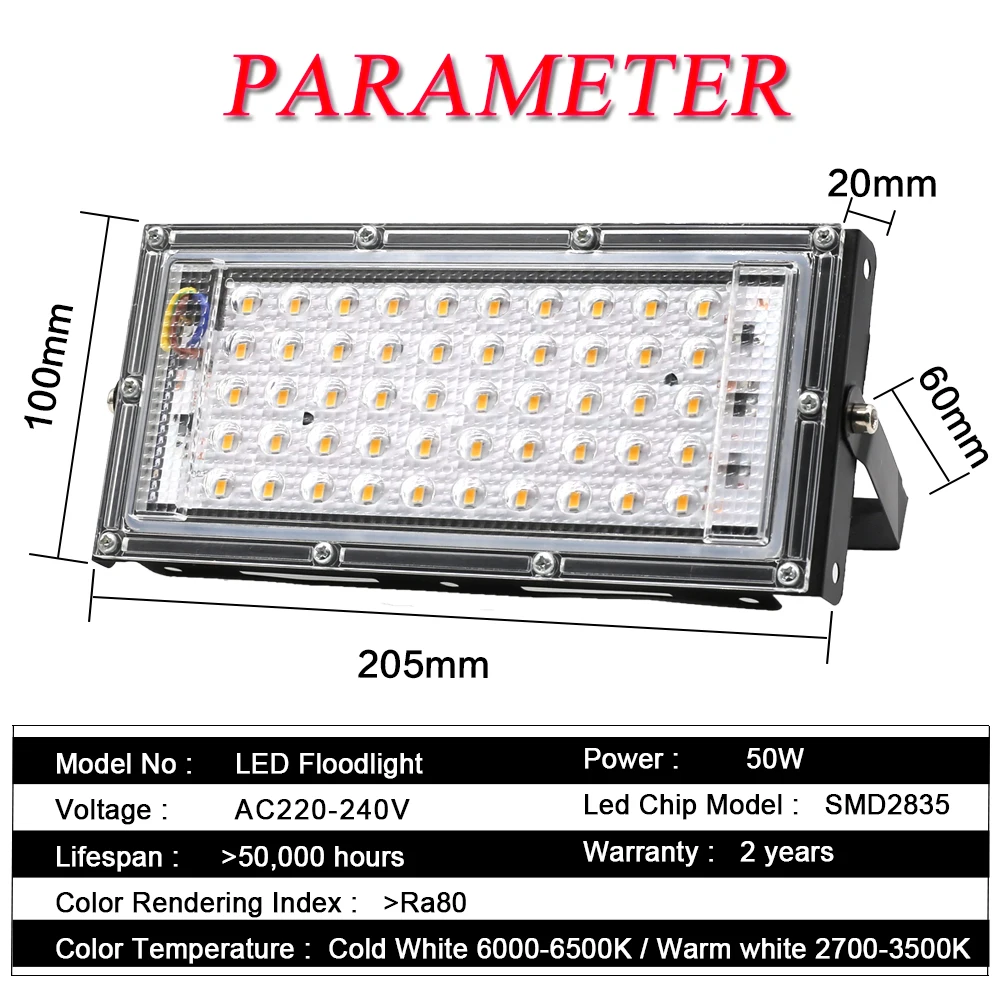Прожексветильник светодиодный, 50 Вт, 220 В, 240 в, водонепроницаемый, IP65