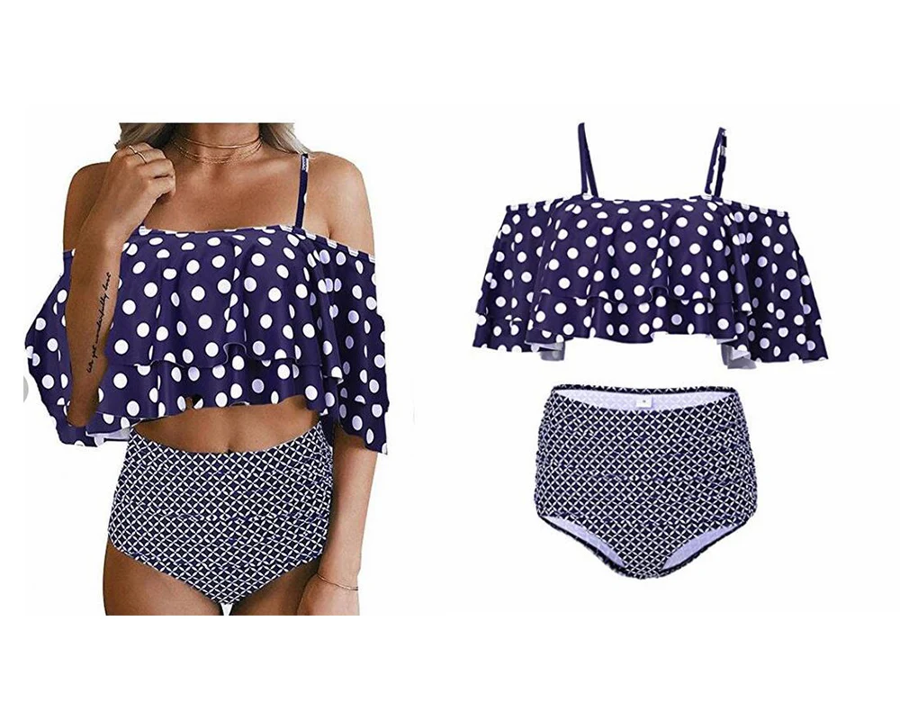 Женский раздельный купальник с открытыми плечами, оборками и воланом, укороченный топ, бикини с вырезами, комплект с низом out205