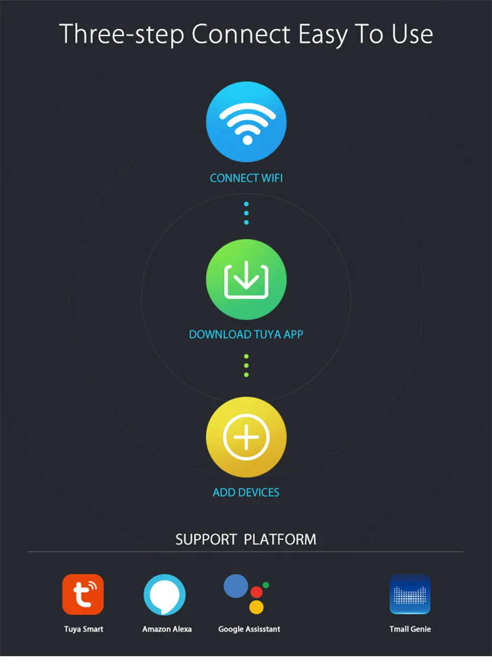 Никаких сложных инструментов для установки не требуется. Датчик может быть установлен с двухсторонней клейкой лентой или винтами (в комплекте) всего за несколько шагов, И загрузите приложение ldquoSmart liferdquoот GooglePlay или app Store, чтобы добавить устройство для обнаружения состояния вашей двери/окна.