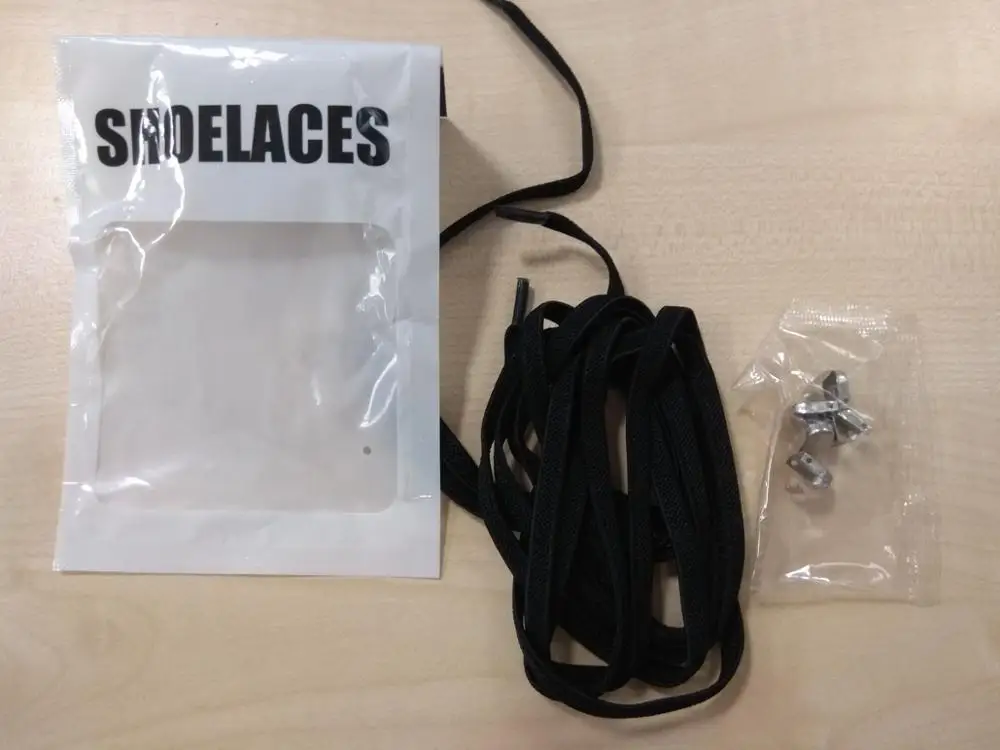 Дошло супербыстро в общей посылке с другими заказами.Железки,наконечники не пригодились.Беру второй раз ,резинкой, шнурки можно не развязывать.