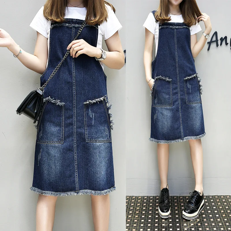 Повседневные свободные платья-комбинезоны, летнее женское джинсовое платье, сарафан, женское однотонное платье из джинсовой ткани с регулируемыми лямками, модель 5XL