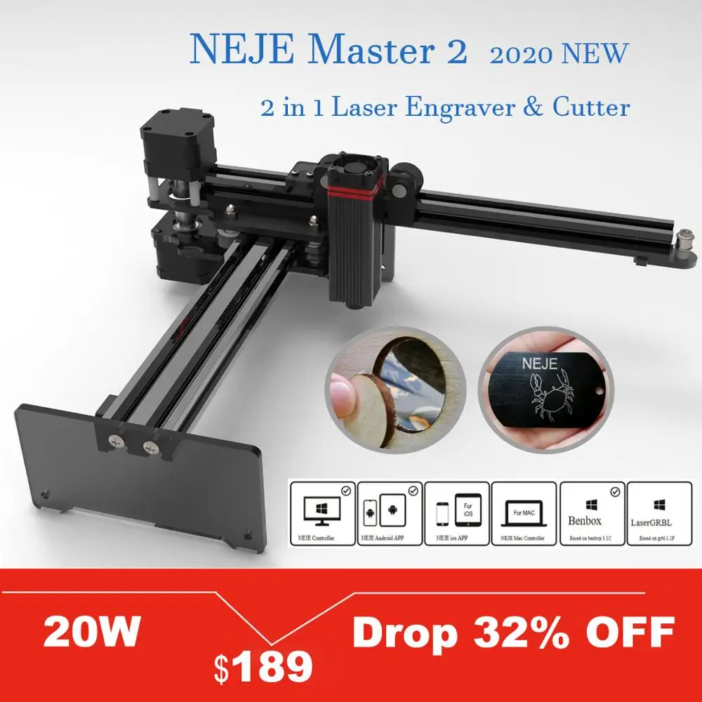 NEJE Master 2S 20 Вт лазерный гравер, резак GD32 MCU, лазерный гравировальный станок, древесный роутер с APP управлением LaserGRBL Lightburn