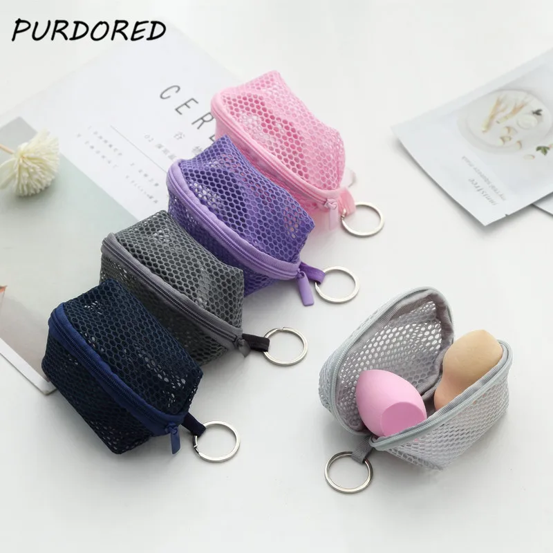 Пурпурная мини-сумка для макияжа, 1 шт., однотонная сумка для пудры, женская косметичка для яиц, спонж для макияжа, сумка для хранения, кошелек для монет