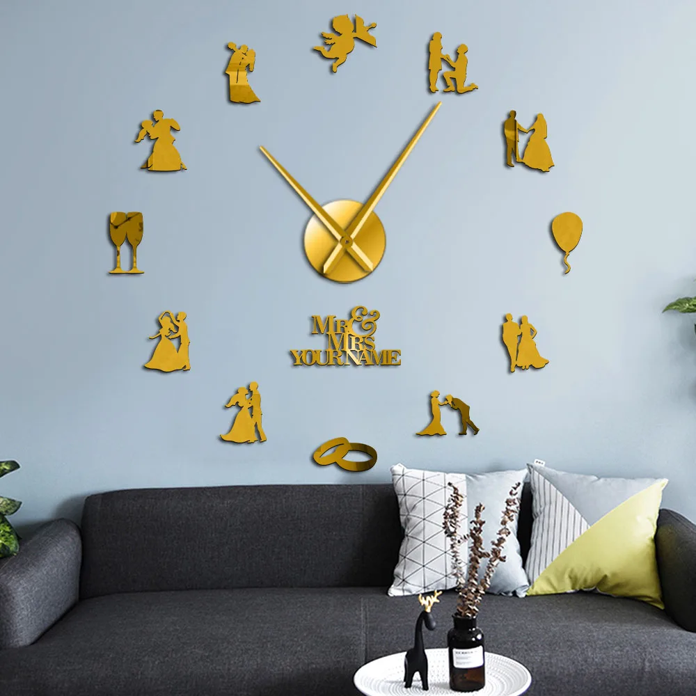 Влюбленная пара, обрученная, на заказ, Свадебная вечеринка, настенное украшение, большие настенные часы, персонализированные большие настенные часы, подарок на день Святого Валентина