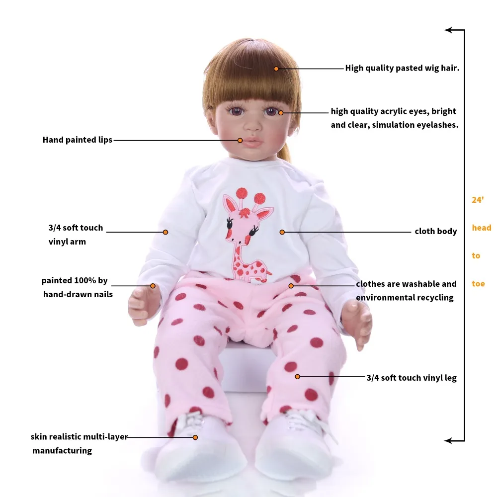 Реалистичная кукла-реборн KEIUMI 60 см, тканевое тело, 24 дюйма