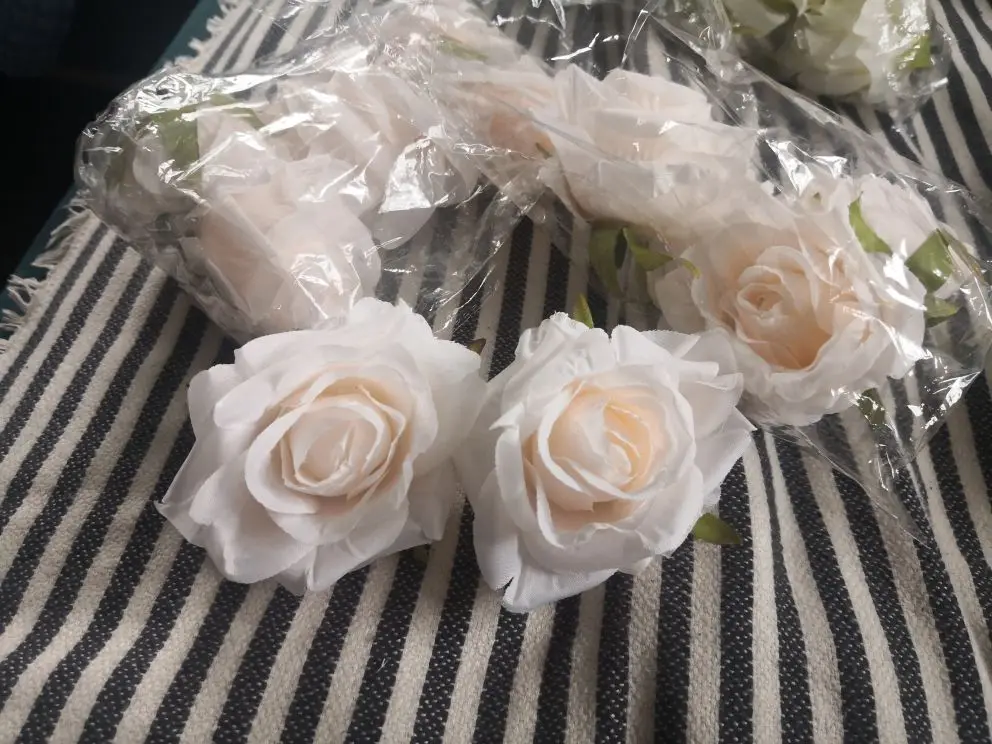 Искусственные розы, белые шелковые цветы, искусственные головки, 5 шт., аксессуары для скрапбукинга