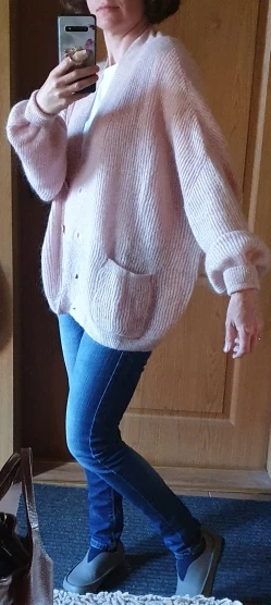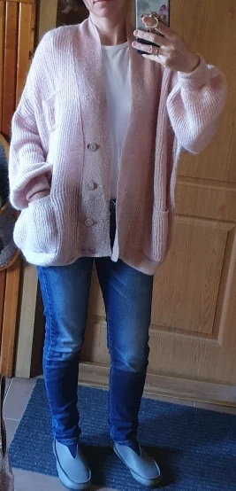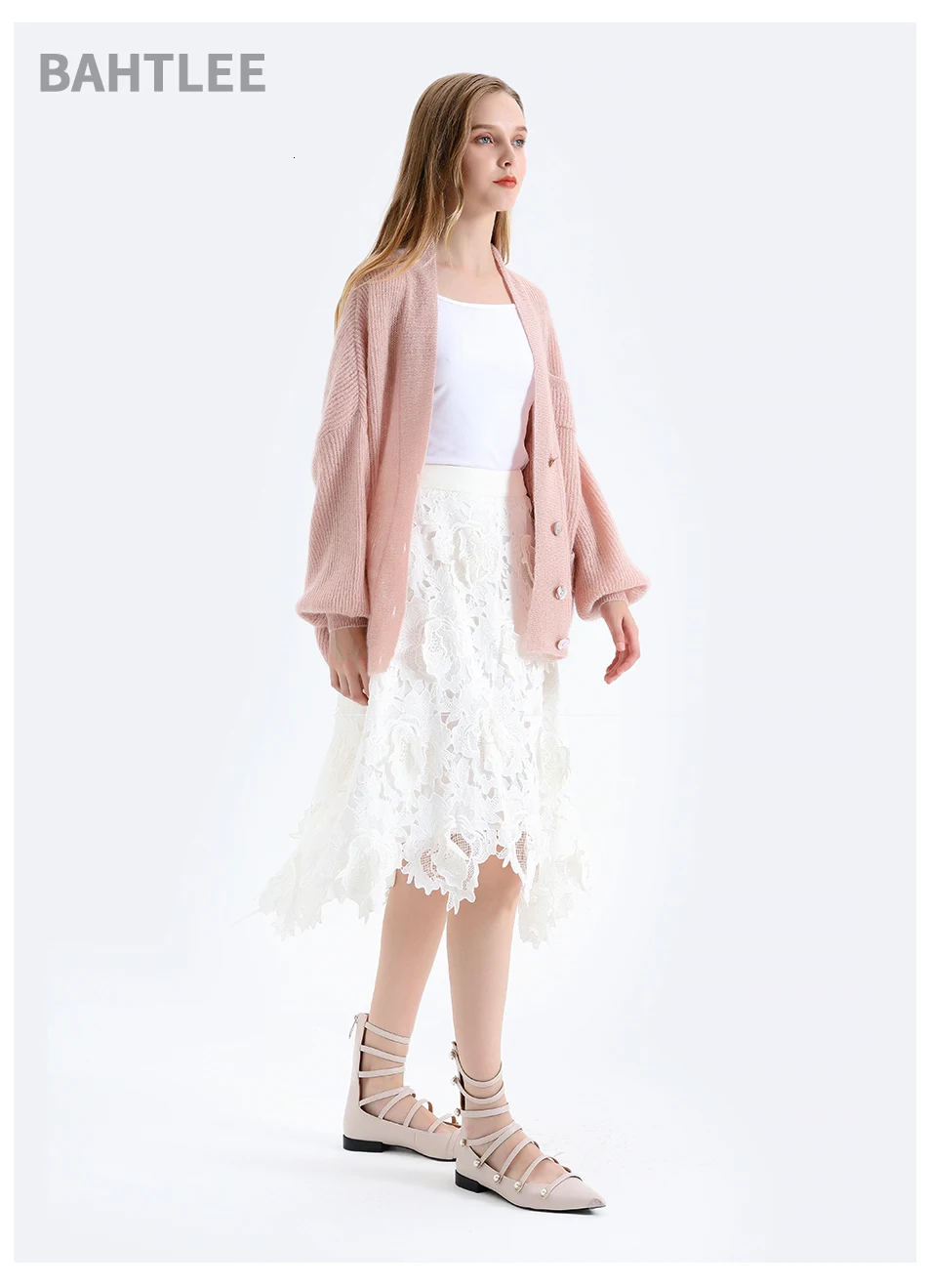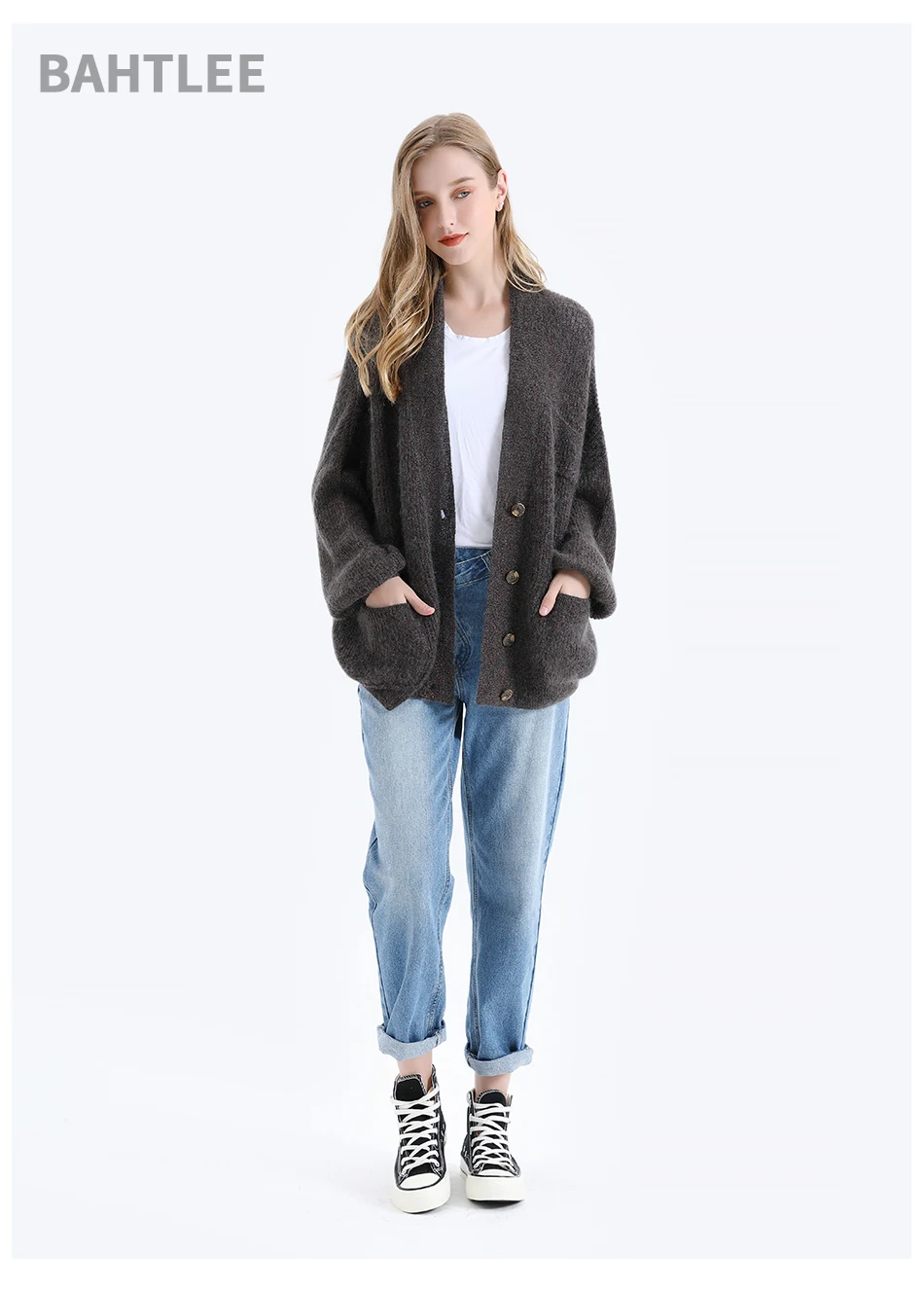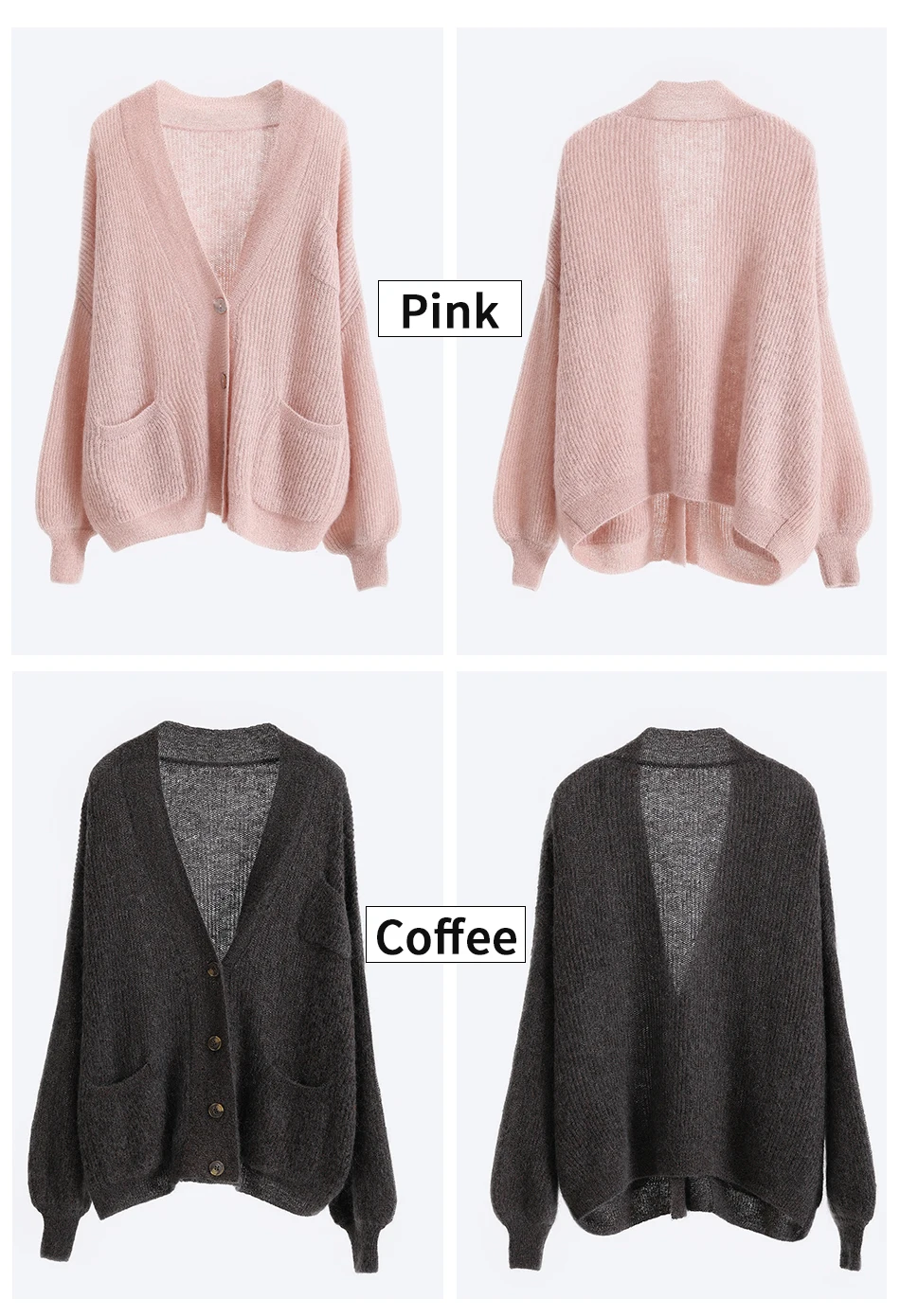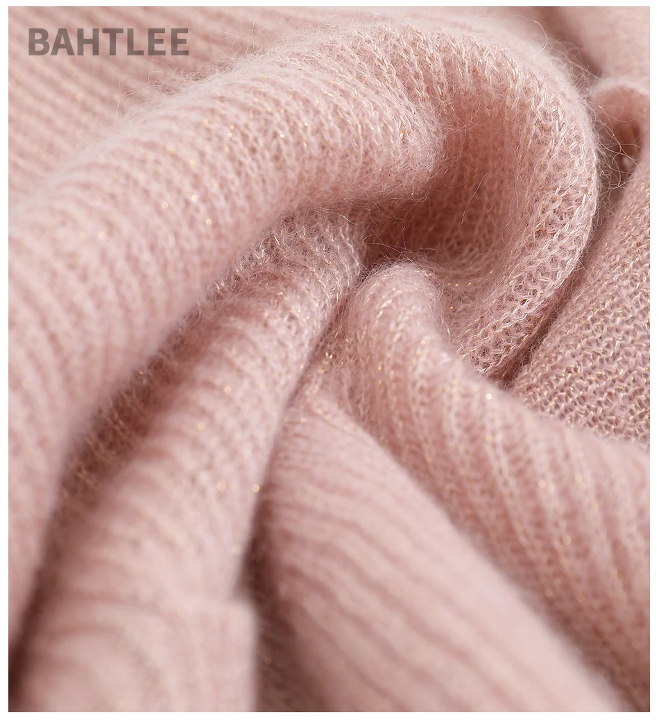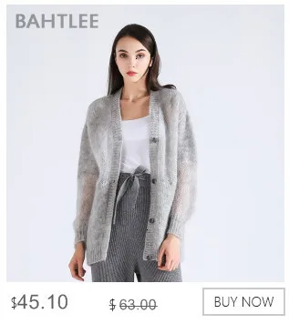 Женский мохеровый свитер BAHTLEE, вязаный джемпер с золотистым люрексом и пышными рукавами, Свободный кардиган с V-образным вырезом на пуговицах на осень и зиму