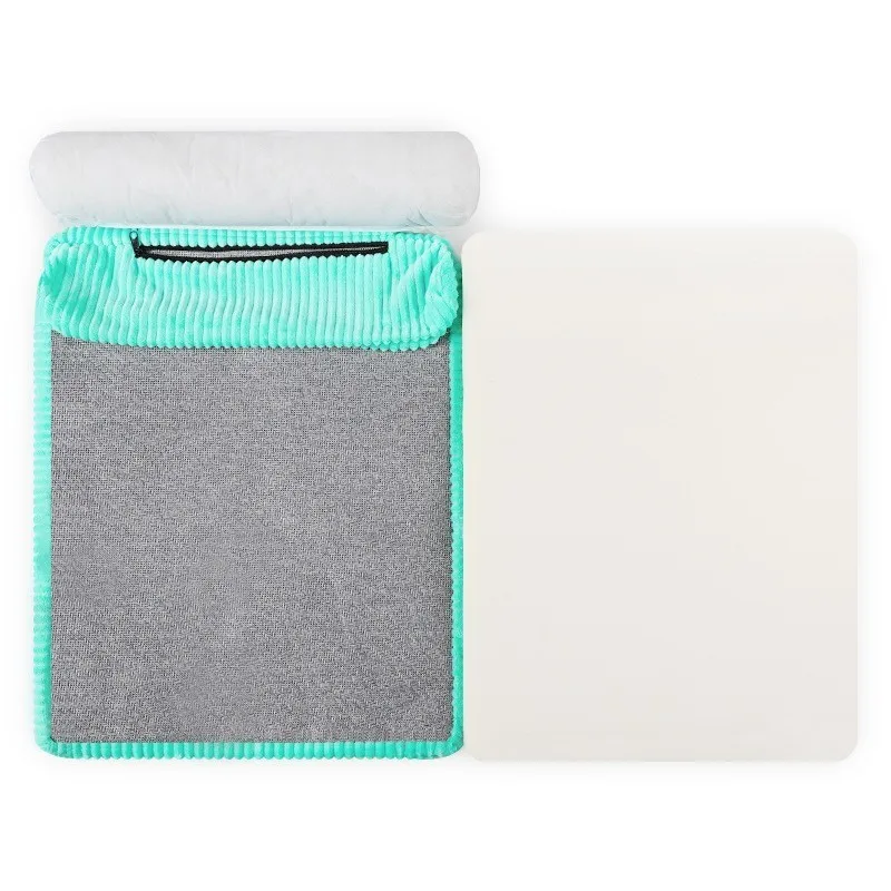 покупала специально с таким покрытием, так как из за меха -жарко и спит в основном на голом полу. сразу постирала, так как запах был специфический. стирка на 40 гр, всё отлично (паралон конечно вытаскивала). пёс оценил ни сразу. грызла её, таскала, но в ней не спала. Постелила хлопковую пеленочку. теперь всё ок. и не жарко и удобно.