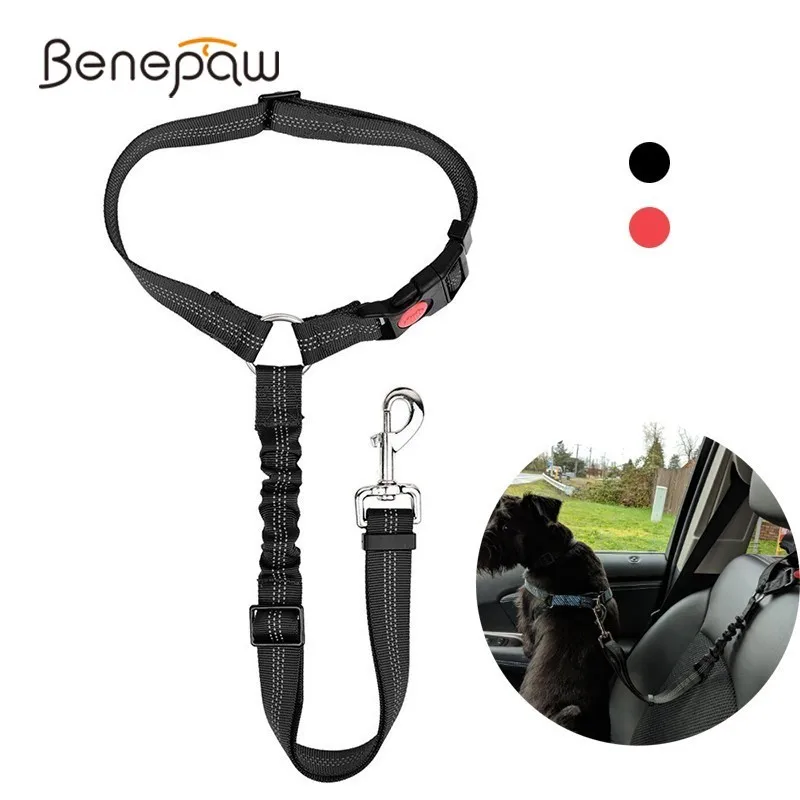 Подголовник удерживающие дизайн--- Этот ремень безопасности для собак Benepaw разработан с подголовником. Его можно использовать во всех моделях транспортного средства с подголовником. Ремешок, висящий на подголовнике, соединен запираемой быстроразъемной пряжкой. Запираемая Пряжка предотвращает открытие круга и гарантирует безопасность вашего питомца. Отрегулируйте ремень безопасности до максимальной длины и захватите круг ремня, чтобы использовать его в качестве общего поводка.