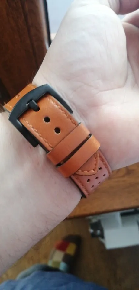 Продукт на 100% соответствует описанию. Отлично смотрится на моих умных часах (часы samsung galaxy первого поколения). Материал на ремешке кажется довольно правильным, сначала он немного тусклый, но с использованием он идеально подходит для моего запястья (это маленький и средний размер).