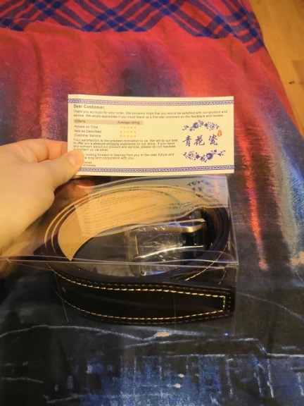 Ремень отличного качества! Стильный, красивый, аккуратно сделанный - просто идеальный! Покупаю уже второй раз в подарок. Доставка быстрая по всему миру. До Санкт-Петербурга дошёл за 3 недели, до Невады - за 2 недели. В обоих случаях качество - выше всяких похвал! Буду заказывать ещё! Спасибо большое за красоту, качество и презентабельный вид в одном товаре!