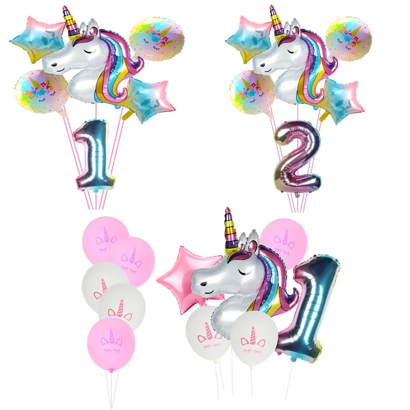 Золотые шары в виде единорога на день рождения, радужные градиентные шары в виде единорога, цифр, украшения для 1-го дня рождения, Детские свадебные шары