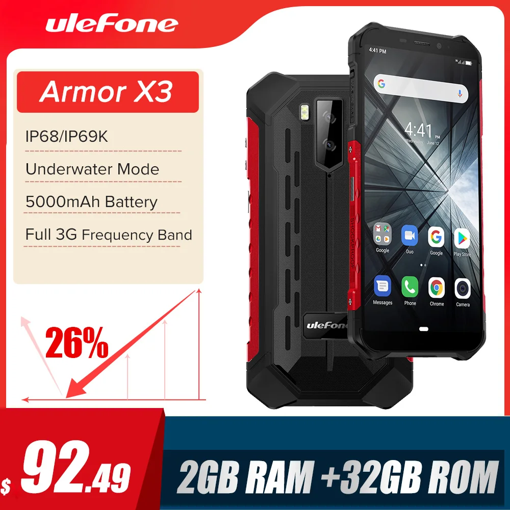 Ulefone Armor X3 ip68 Прочный Водонепроницаемый Смартфон Android 9.0 Телефон Superbattery Сотовый телефон 5.5 дюймов HD+2 ГБ 32 ГБ Телефон